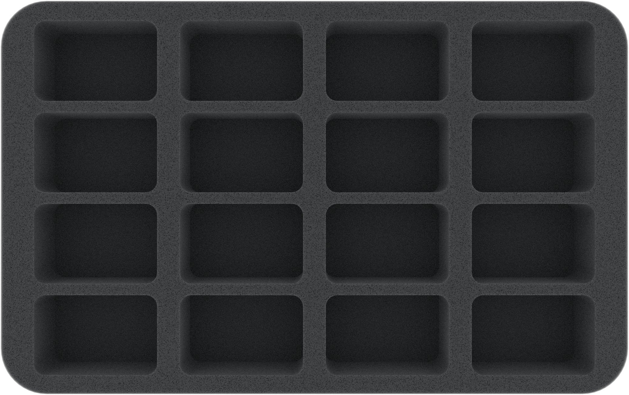 • 1 Half-Size foam tray with 16 compartments for standard infantry models like imperial units, troopers, heroes, or monsters (HS040BF05BO)