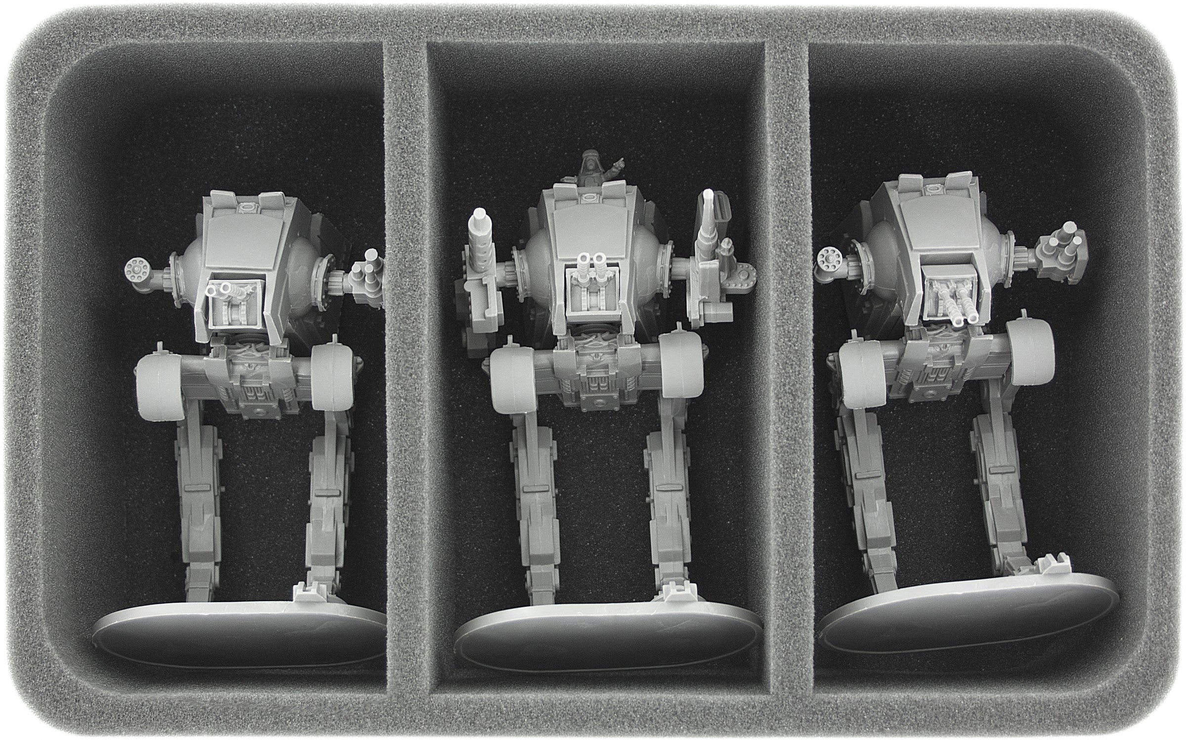 • 1 Half-Size foam tray with three compartments for large models like Imperial Assault AT-ST models (HS085IA09)