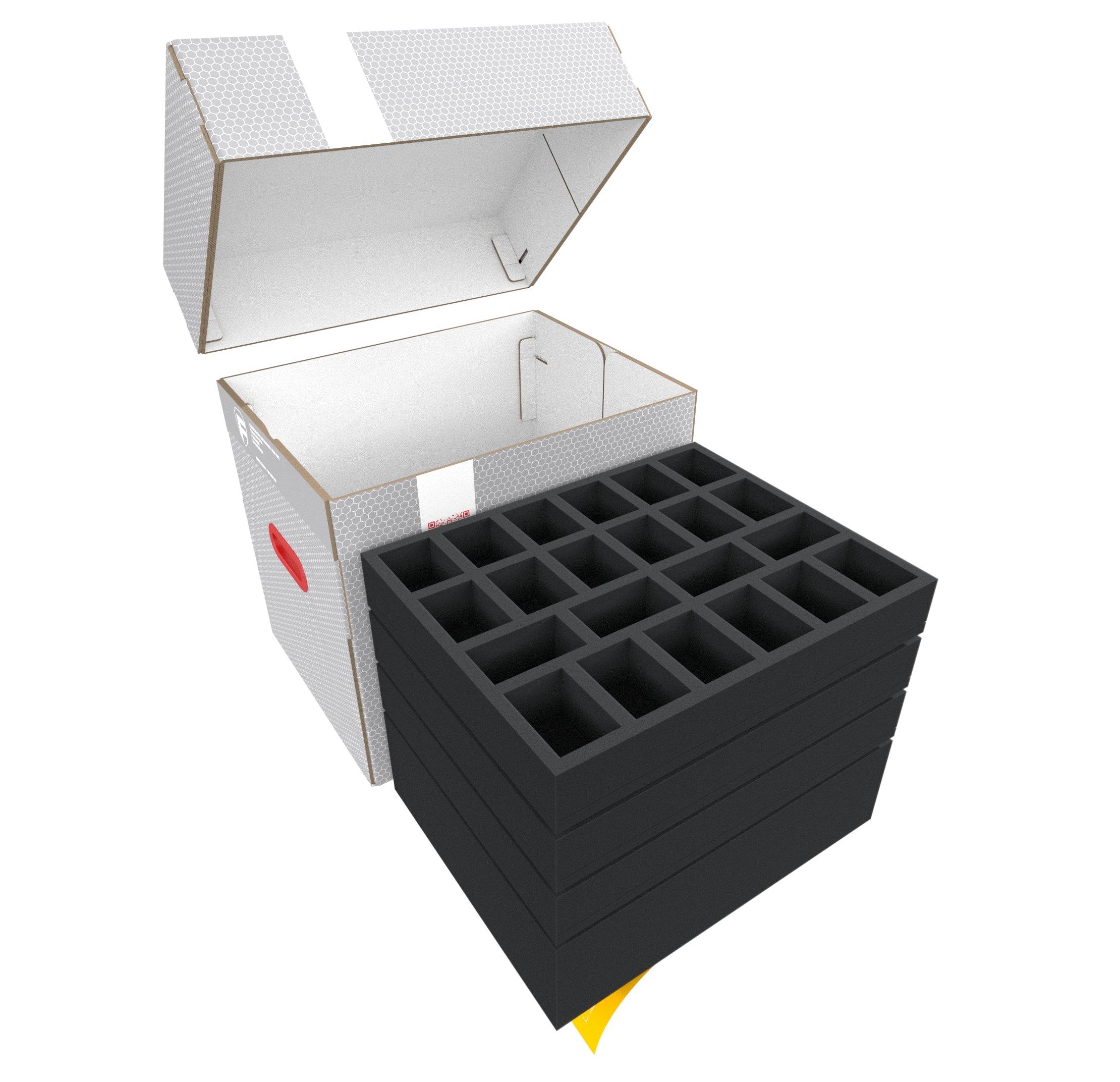 • 4 Full-Size foam trays with 22 compartments each for miniatures on 40 mm base (FSMEZZ050BO)