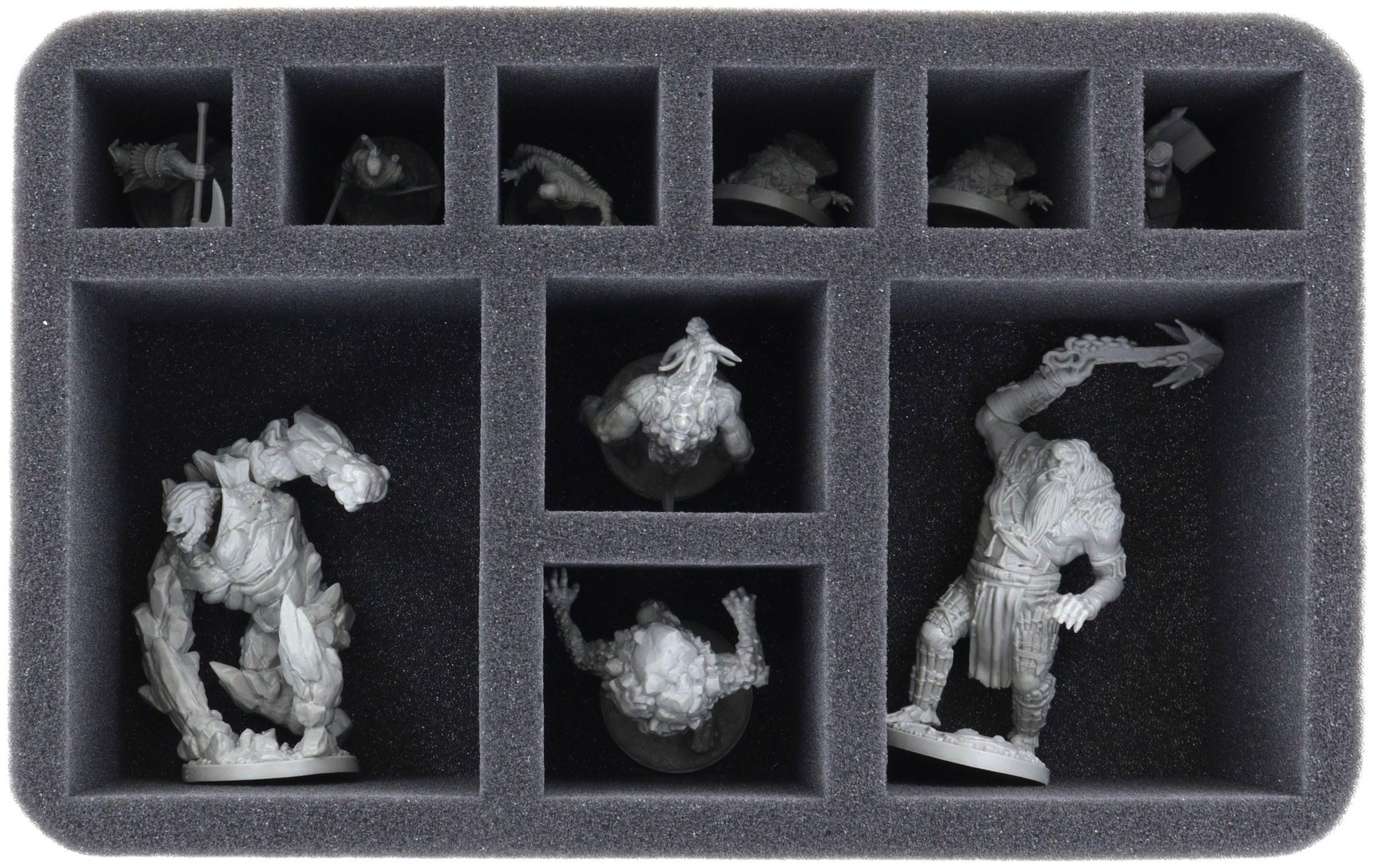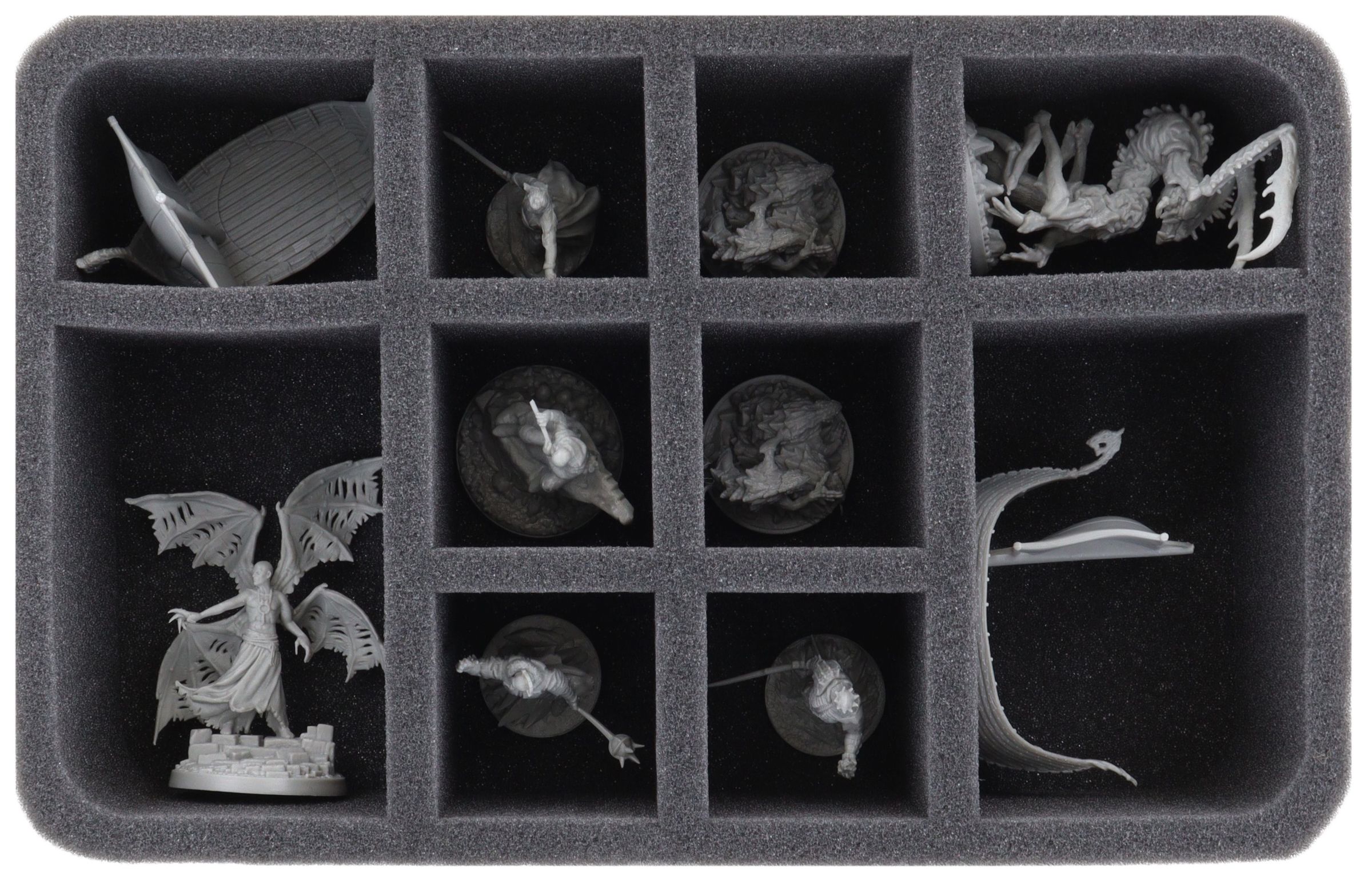 Each miniature has its own compartment. The custom-fit cut compartments reliably protect your figures from damage.