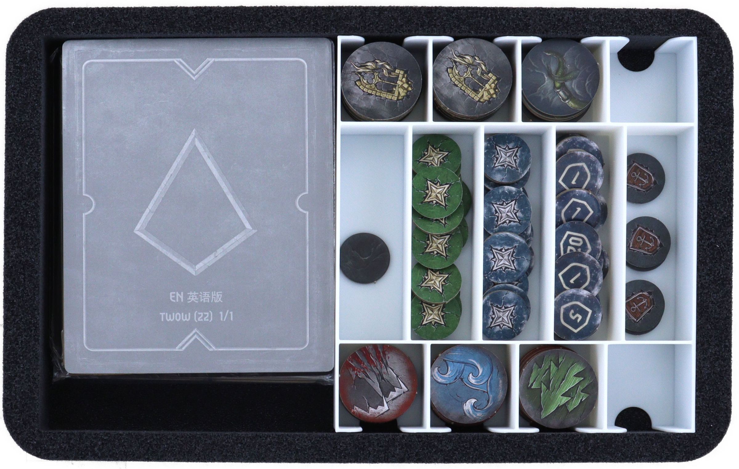• For sorting the cards and game material, the set includes three TCHS105 Storage Boxes, a robust FSLB040 Storage Box, a hard foam insert and various organizer inserts.