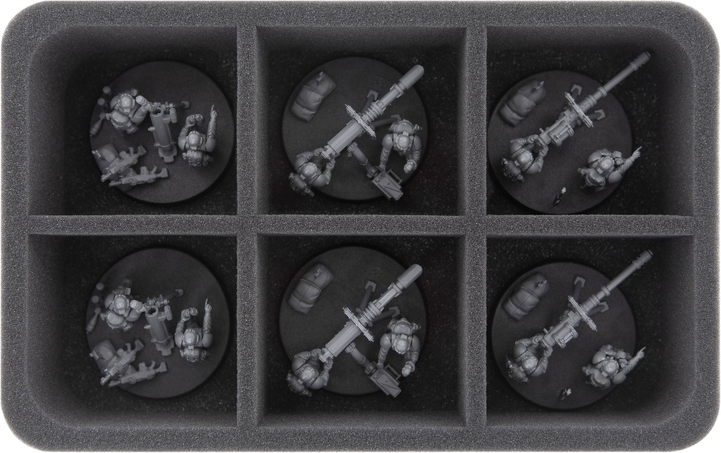 Up to 6 Heavy Weapon Squad miniatures find safe shelter in each of the two Half-Size foam trays.