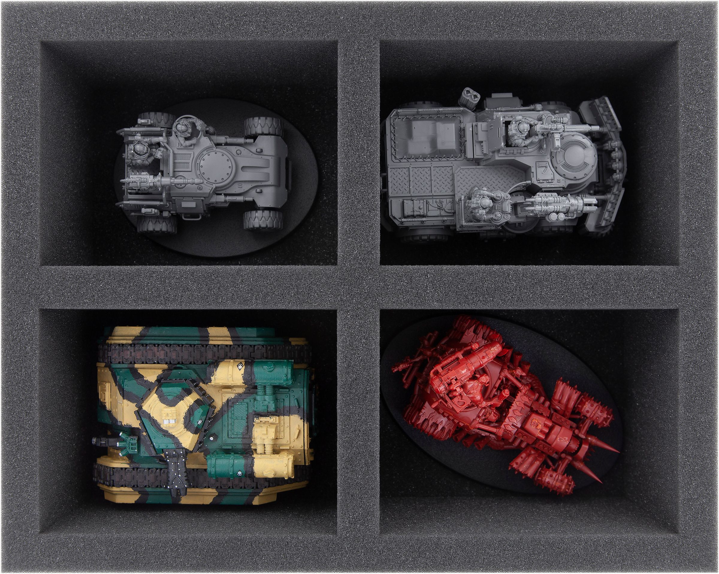 Each model gets its own compartment. The soft foam not only protects the filigree details from damage, the colors of the painted models are also protected from abrasion and scratches.