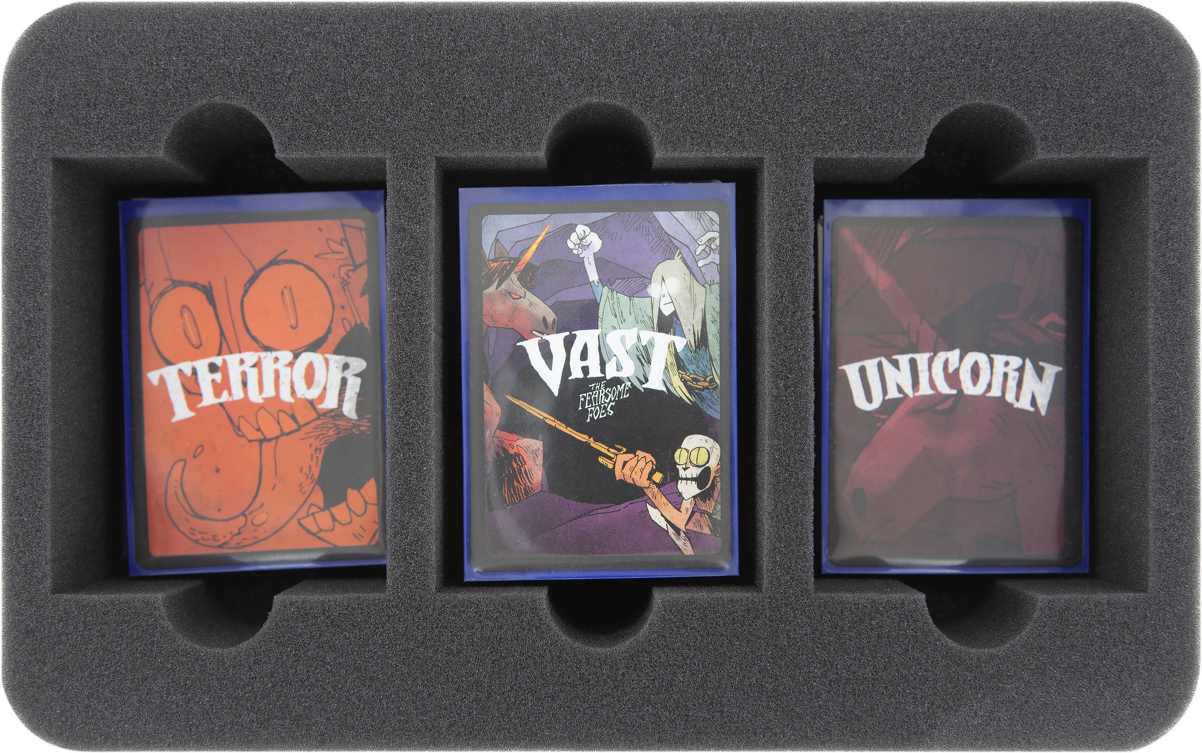 To make sure you don’t lose your game components in dark corners or even caverns, Feldherr introduces you to this MEDIUM PLUS Bag. The robust bag is filled with matching foam trays and will hold the entire content of the "Vast: Crystal Caverns“ Kickstarter campaign – including all miniatures and Add-Ons.