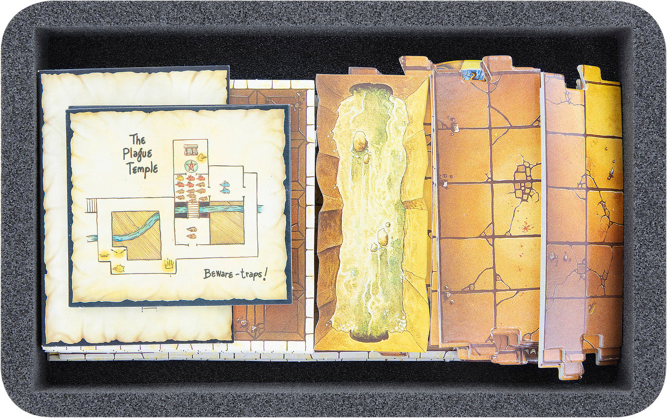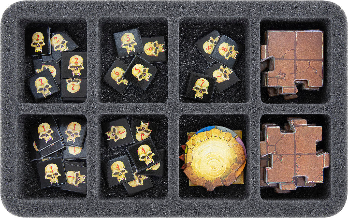 • 2 Half-Size foam trays, each with 16 compartments for Heroes, Skaven, doors, and additional miniatures from the expansions (HS035BF05BO)