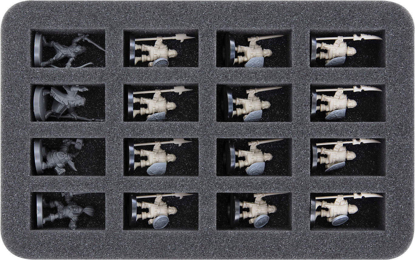 • 2 Half-Size foam trays, each with 16 compartments for Heroes, Skaven, and models with similar dimensions (HS035BO)