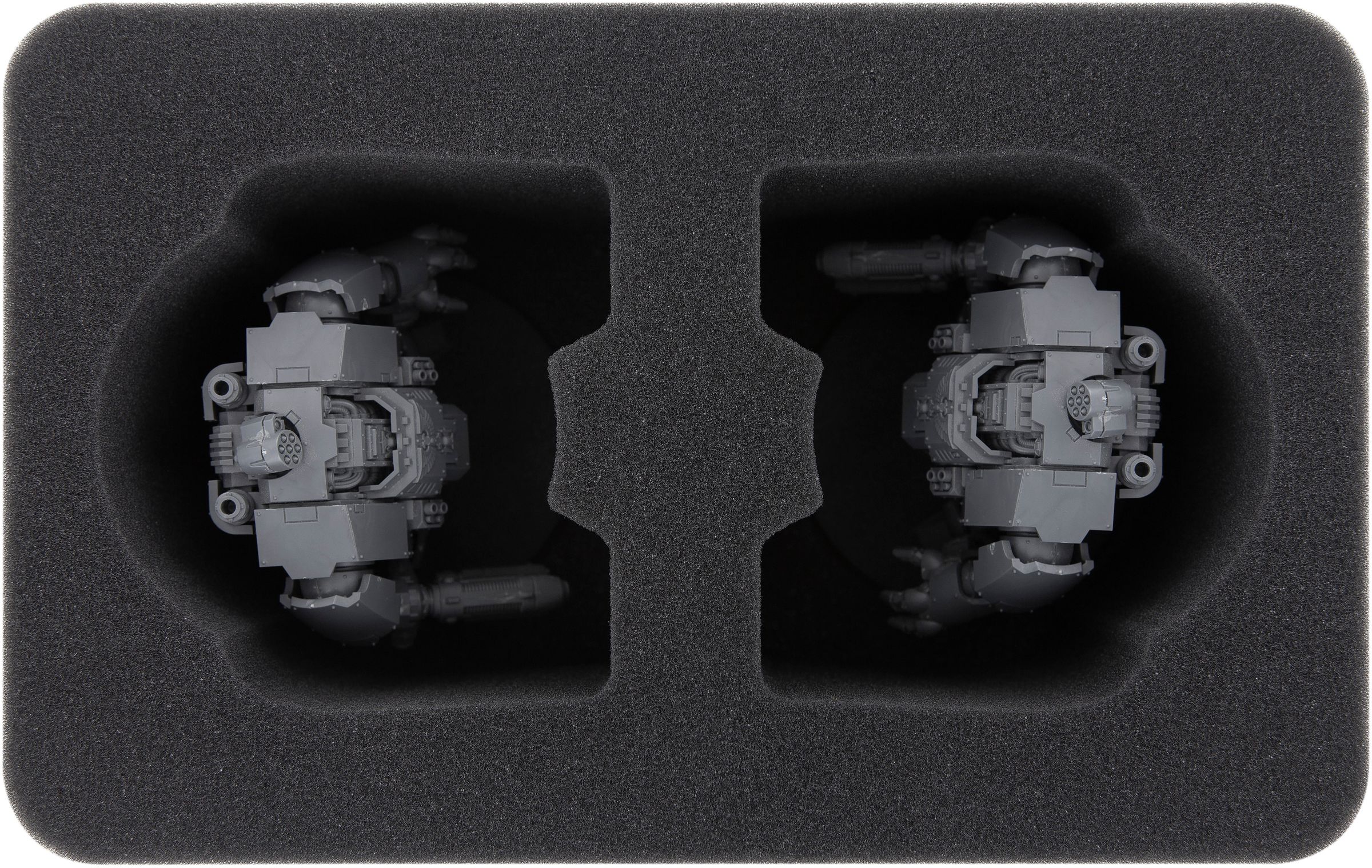 • 1 Half-Size foam tray with 2 compartments for Primaris Redemptor Dreadnought (HSMECS130BO)