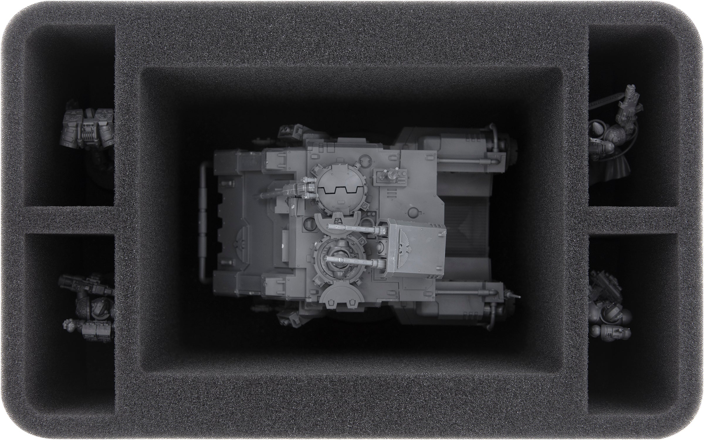 - 1 Half-Size foam tray with 5 compartments for e.g. Primaris-Impulsor, Intercessoren (HS120A006)