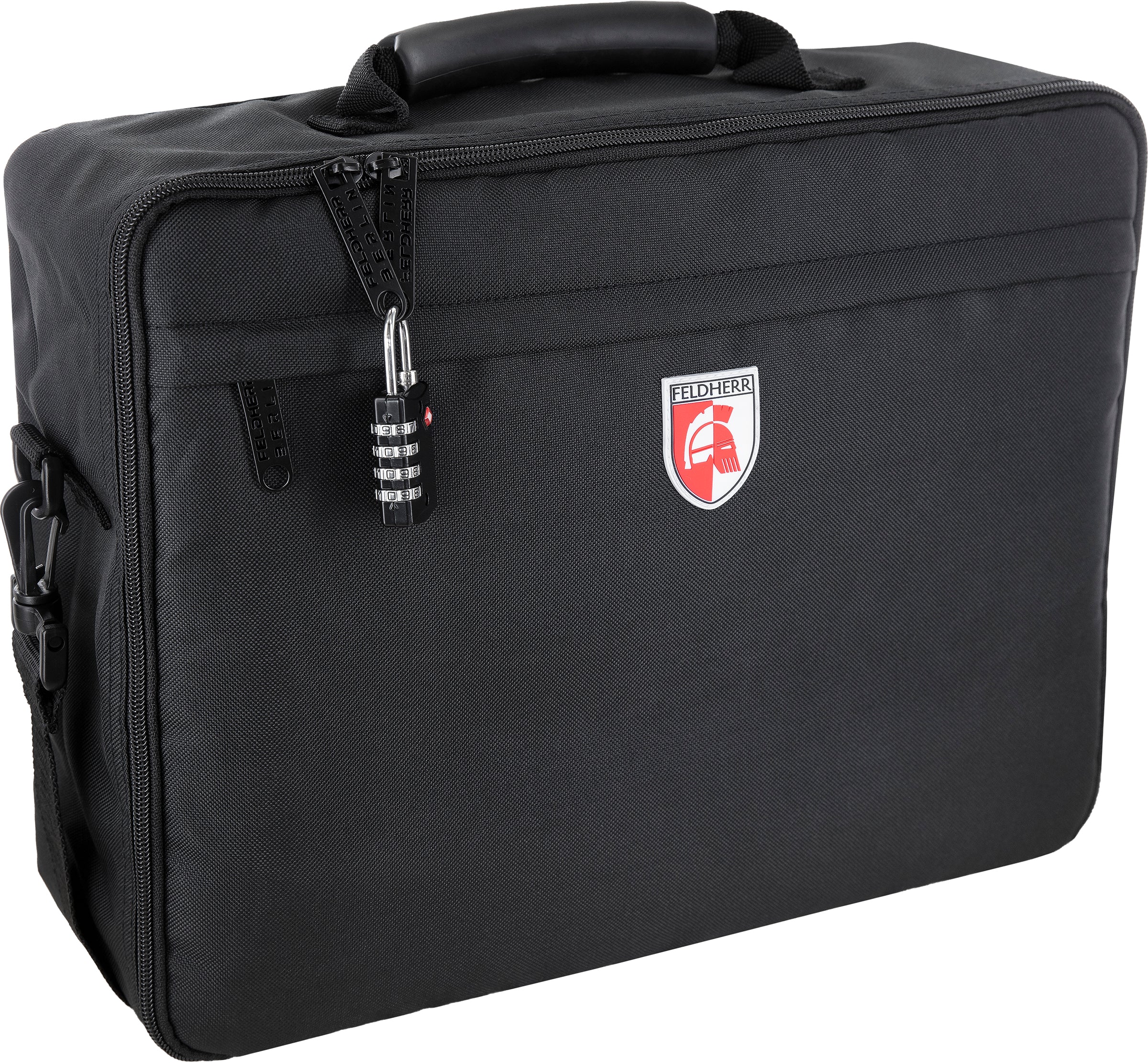Torba Feldherr MEDIUM jest wykonana z wyjątkowo wytrzymałej tkaniny i zapewnia optymalną ochronę jej zawartości przed wpływami zewnętrznymi. Wyściełane panele boczne i wzmocniona podstawa dodatkowo zapewniają optymalną ochronę zawartości przed wpływami zewnętrznymi nawet podczas transportu samochodowego lub kolejowego. Można go również zamknąć i połączyć opcjonalną kłódką. Oprócz dużej głównej komory, torba posiada małą kieszeń zapinaną na suwak z przodu. Tutaj możesz przechowywać arkusze, książki i inne akcesoria.
