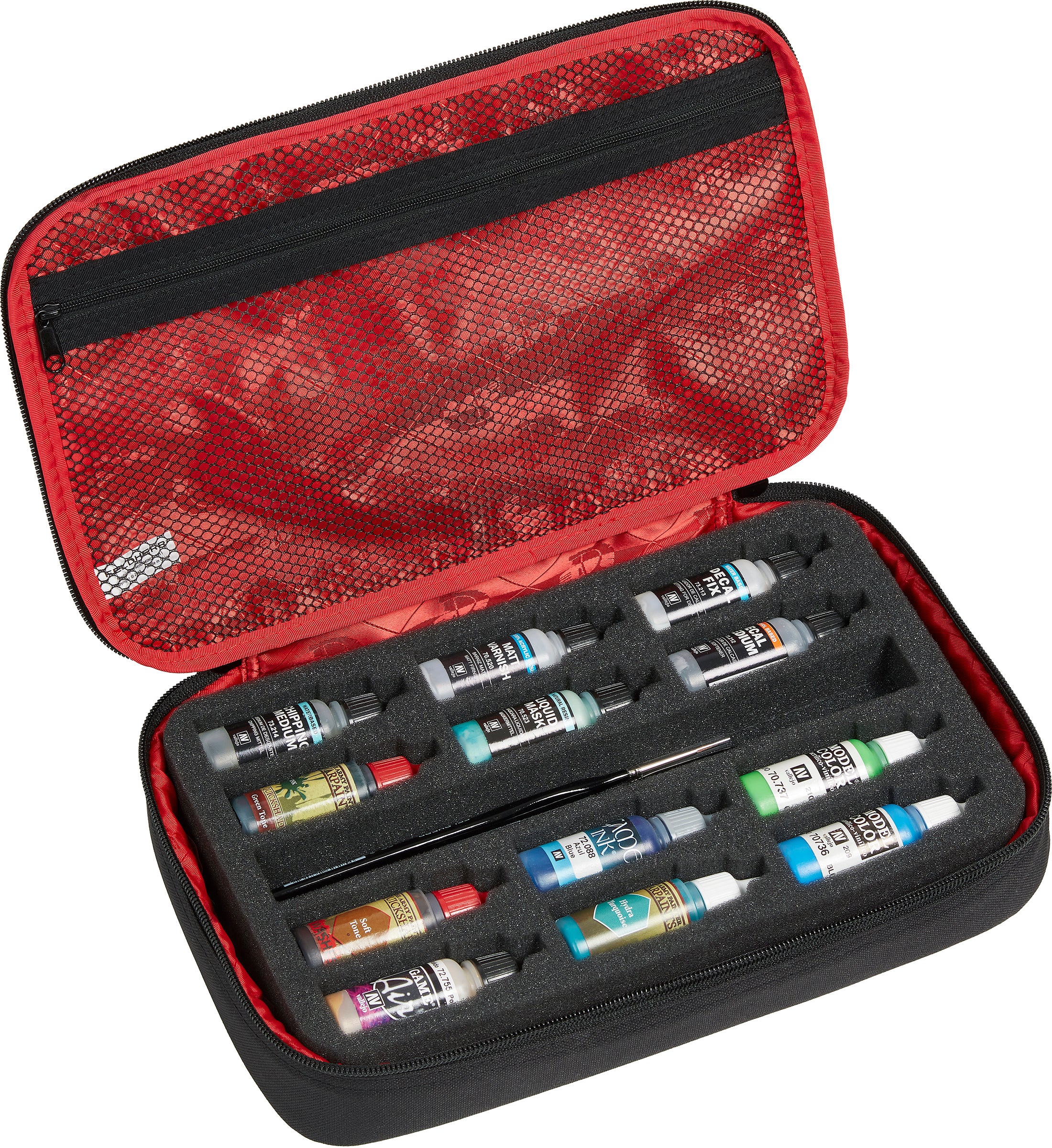 All your miniatures are neatly stowed away, only your colors are scattered on your hobby desk? You want to paint your minis on the road, but don't know what's the best way to transport the color bottles and brushes?
