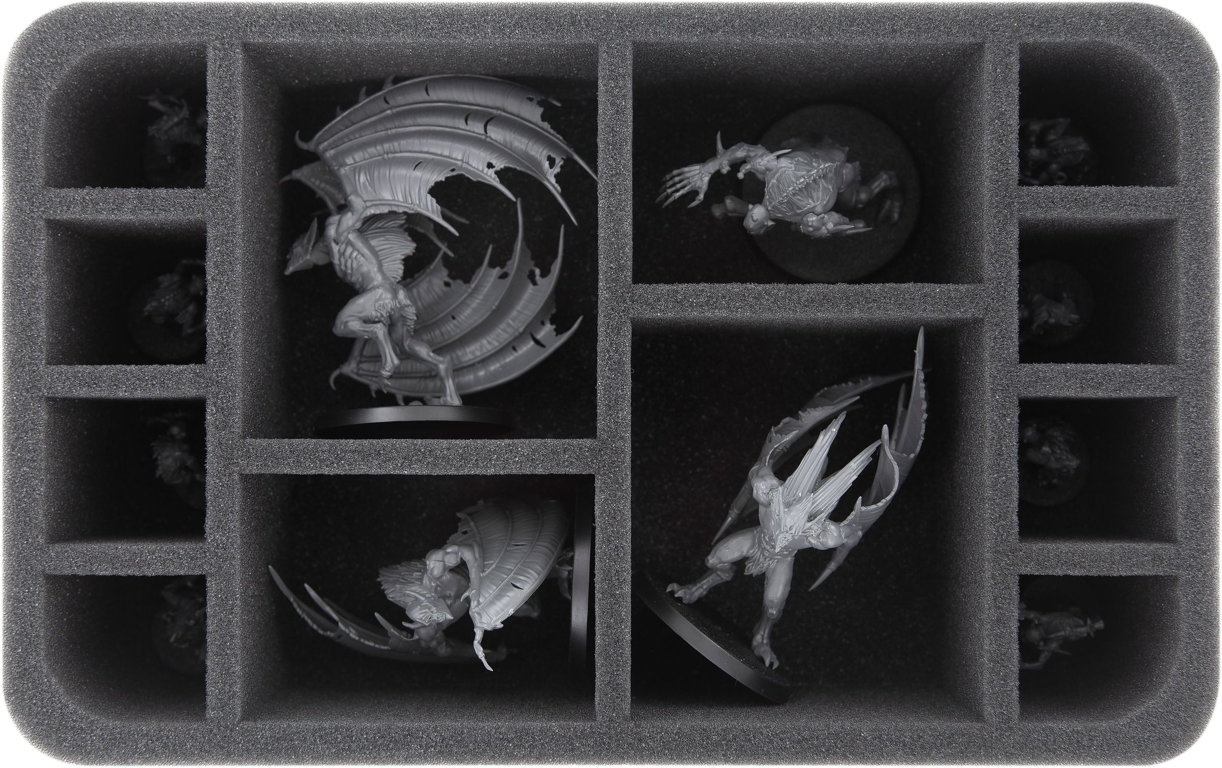 The fine-pored, soft foam optimally protects the sensitive parts of the filigree miniatures from damage. The claws remain sharp and the wings stay on.