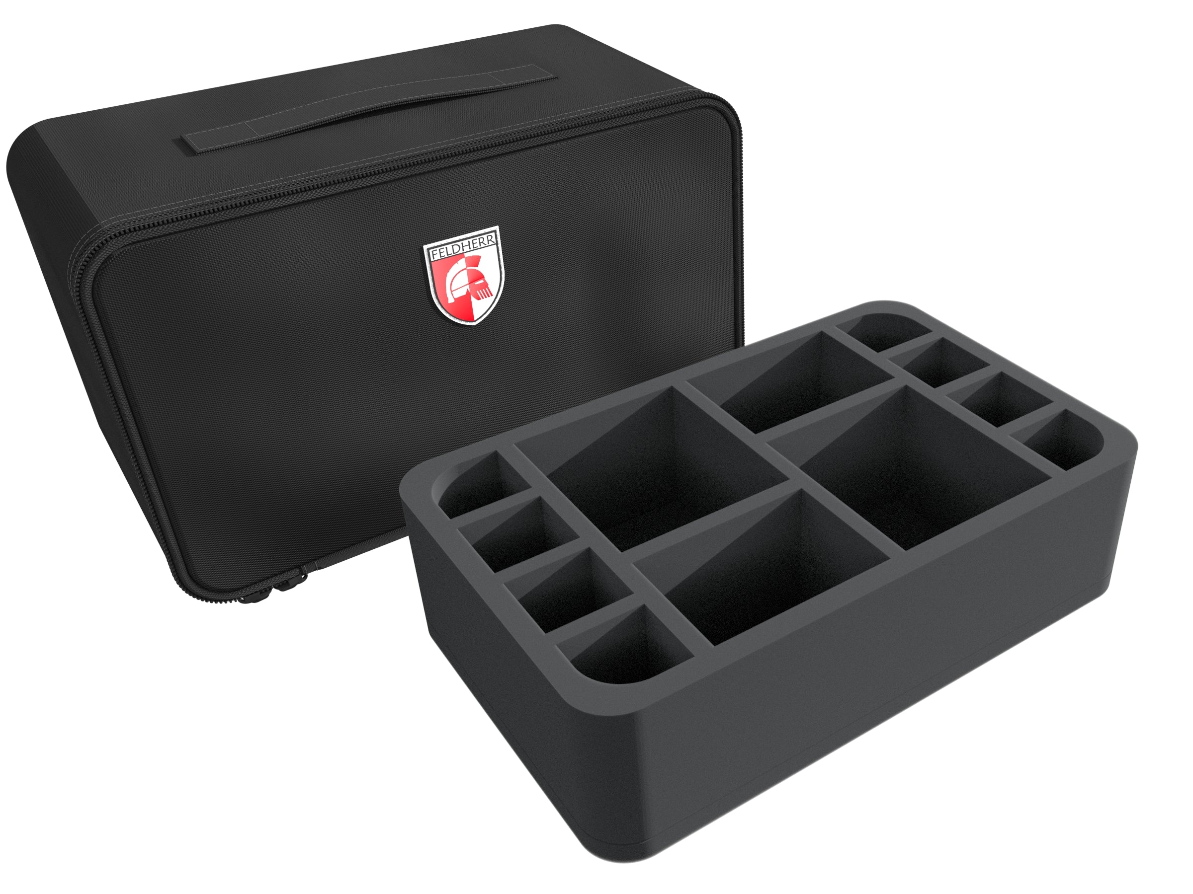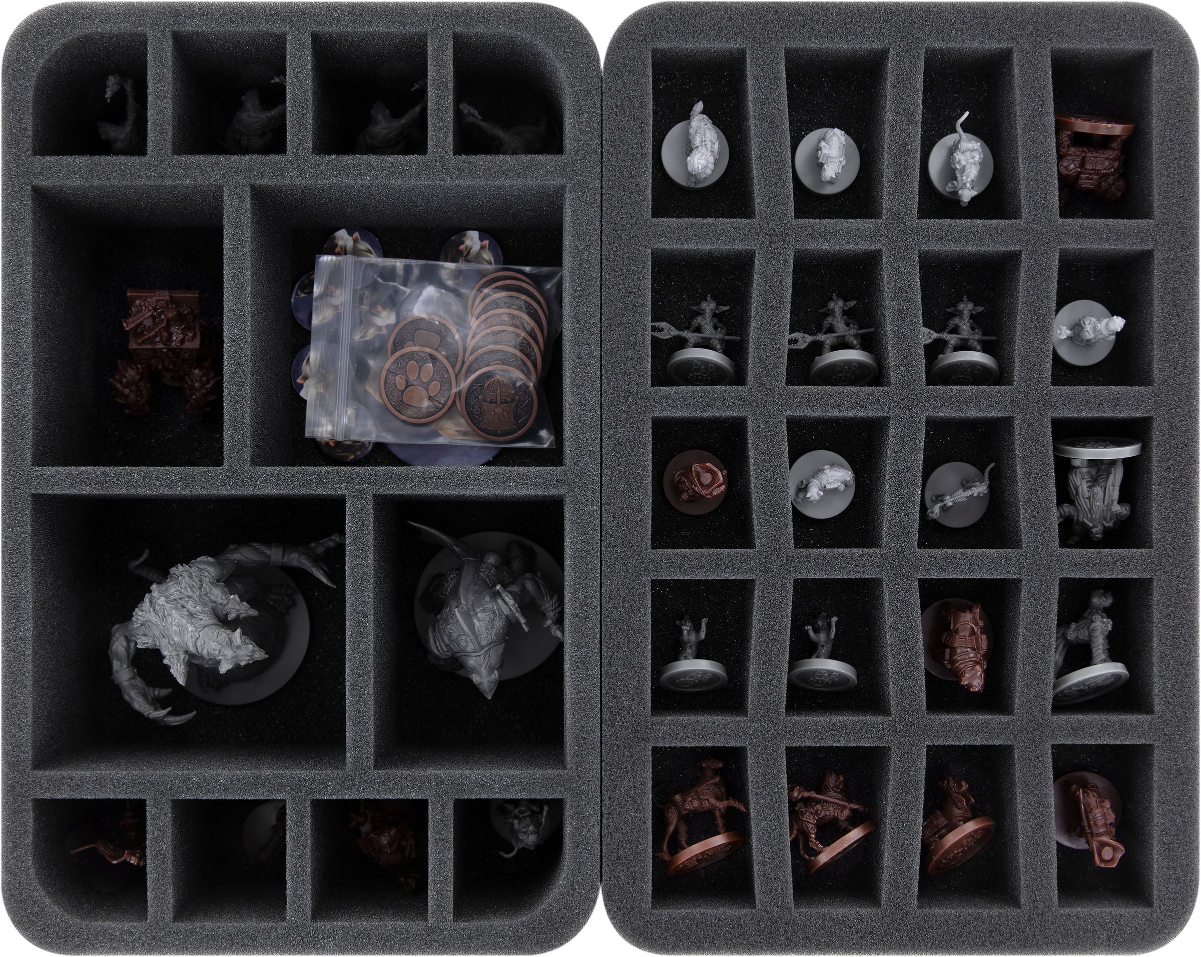 • 1 Half-Size foam tray with 12 compartments each for large and normal-sized miniatures + game materials (HSCW075BO)