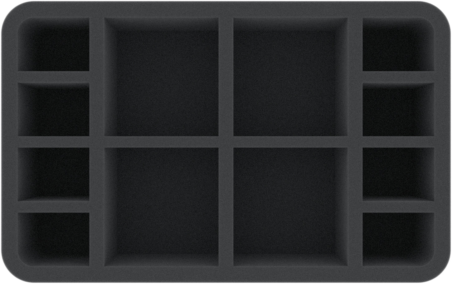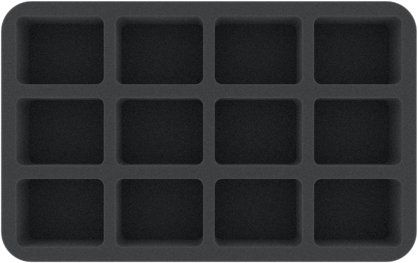 - 1 Half-Size foam tray with 12 compartments for infantry models like Ironskull Deathriders, Ice Shelf Polar Bears and Orc King (HSMFAA070BO)