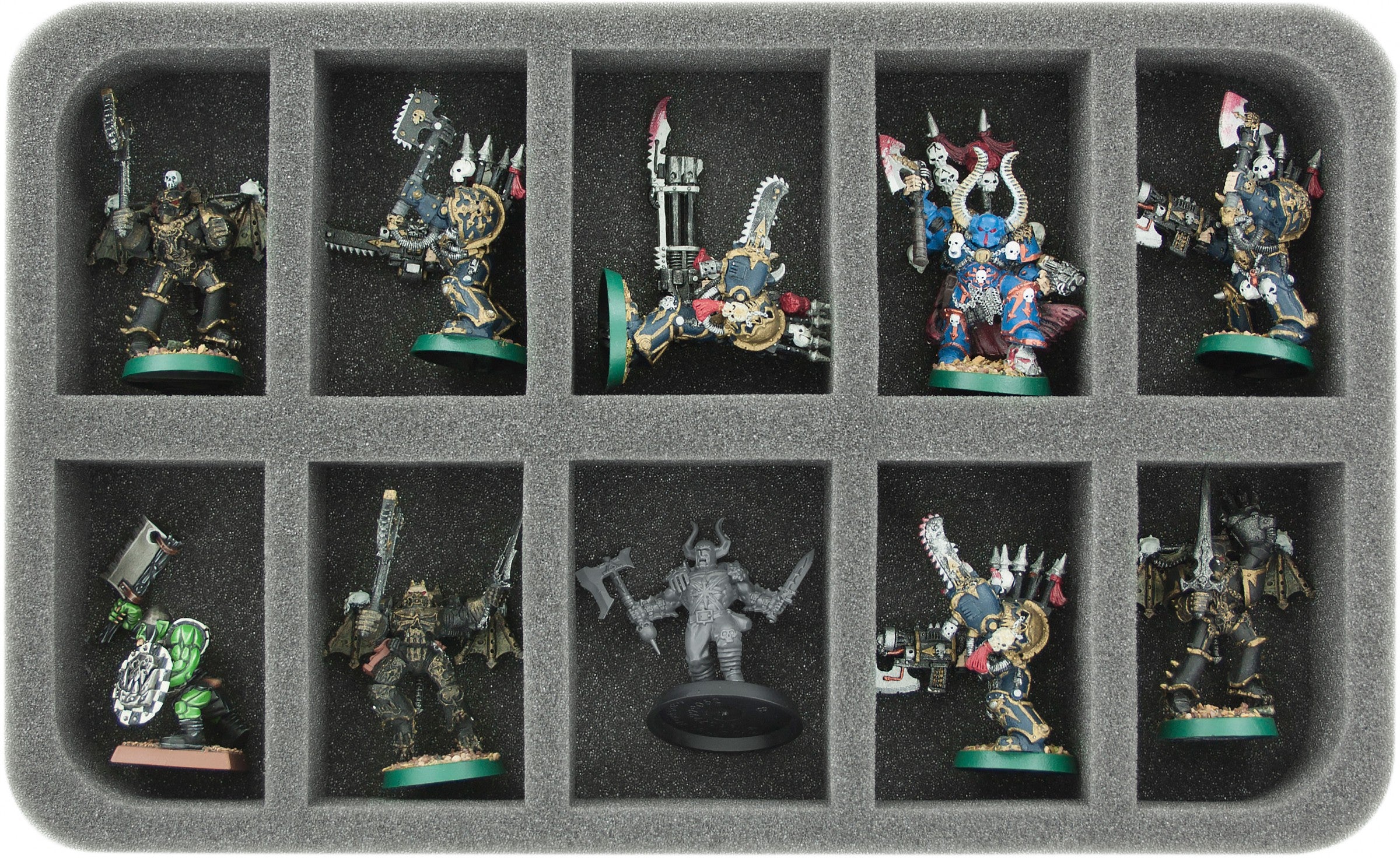 - 1 Half-Size foam tray with 10 compartments for e.g. Daemonettes, Banner Bearer, Musicians, Tranceweaver, Viceleader, Herald of Slaanesh (HSBE040BO)