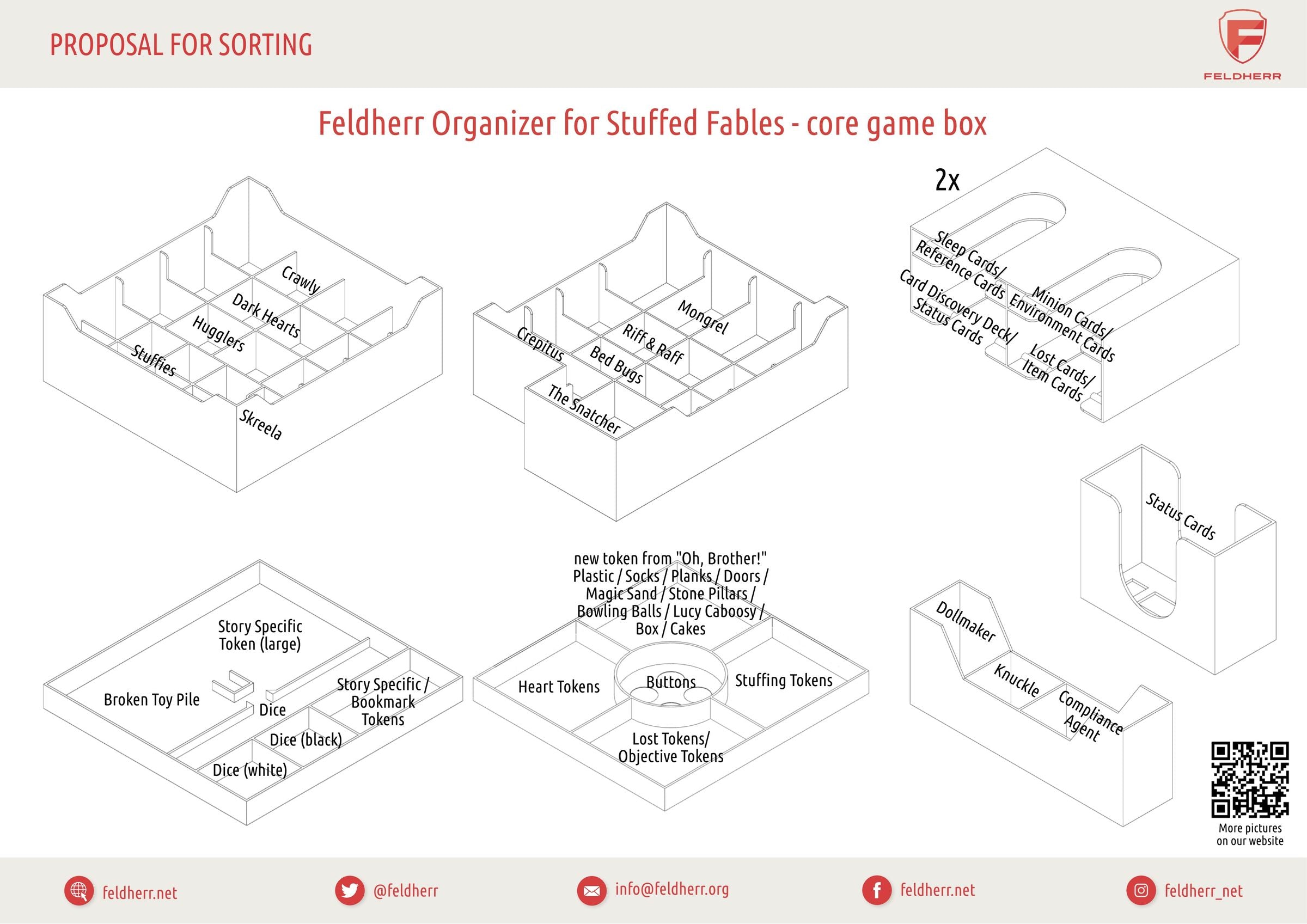 - The Organizer fits into the original “Stuffed Fables” core game box.