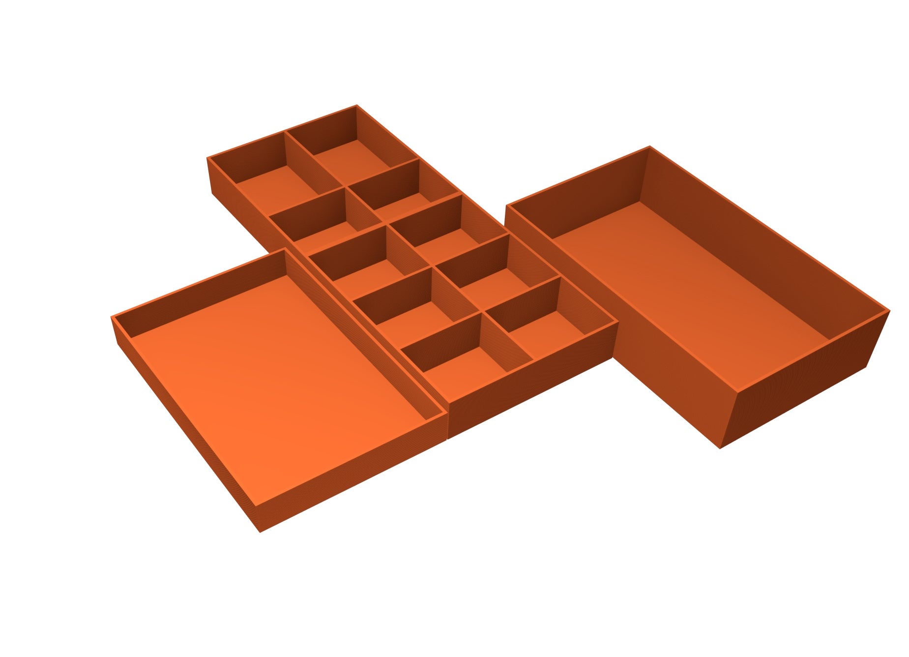 LEVA-NORD consists of 11 trays which can all be removed from the box and freely arranged on the table.