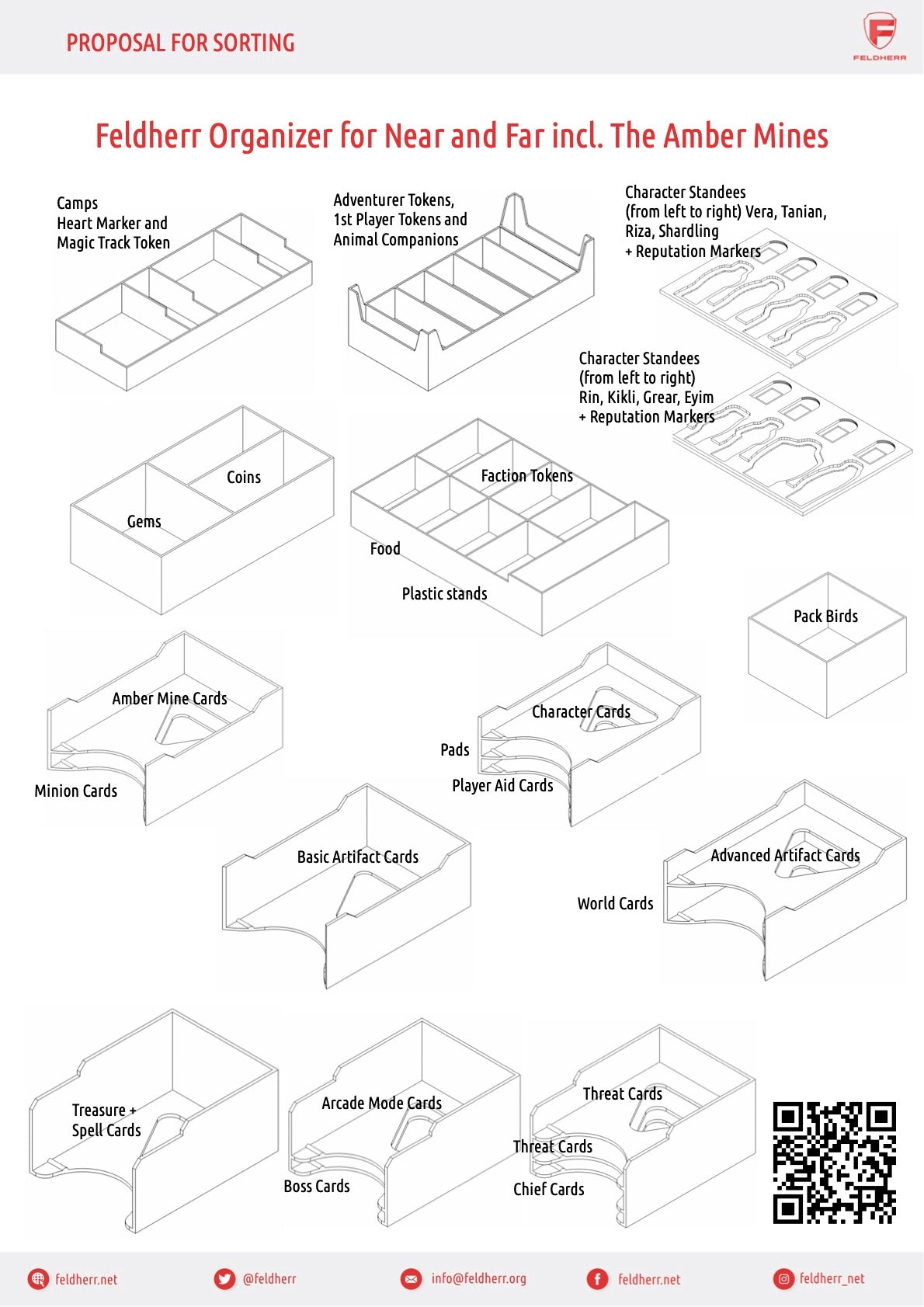 • The Organizer offers space for all game materials from the "Near and Far" core game and the expansion "The Amber Mines" by Red Raven Games