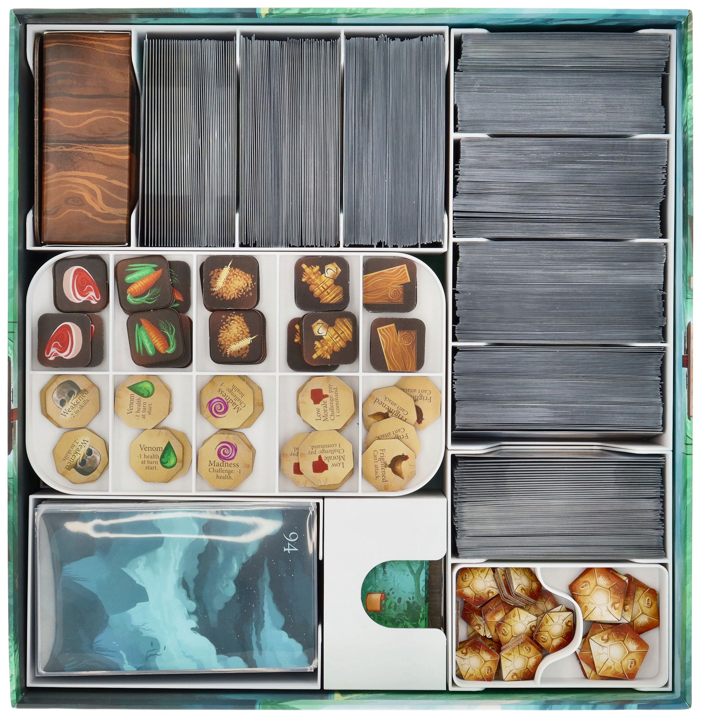 • Individually removable inserts for resources and cards bring your accessories from the box to the tabletop, boosting your playing experience.