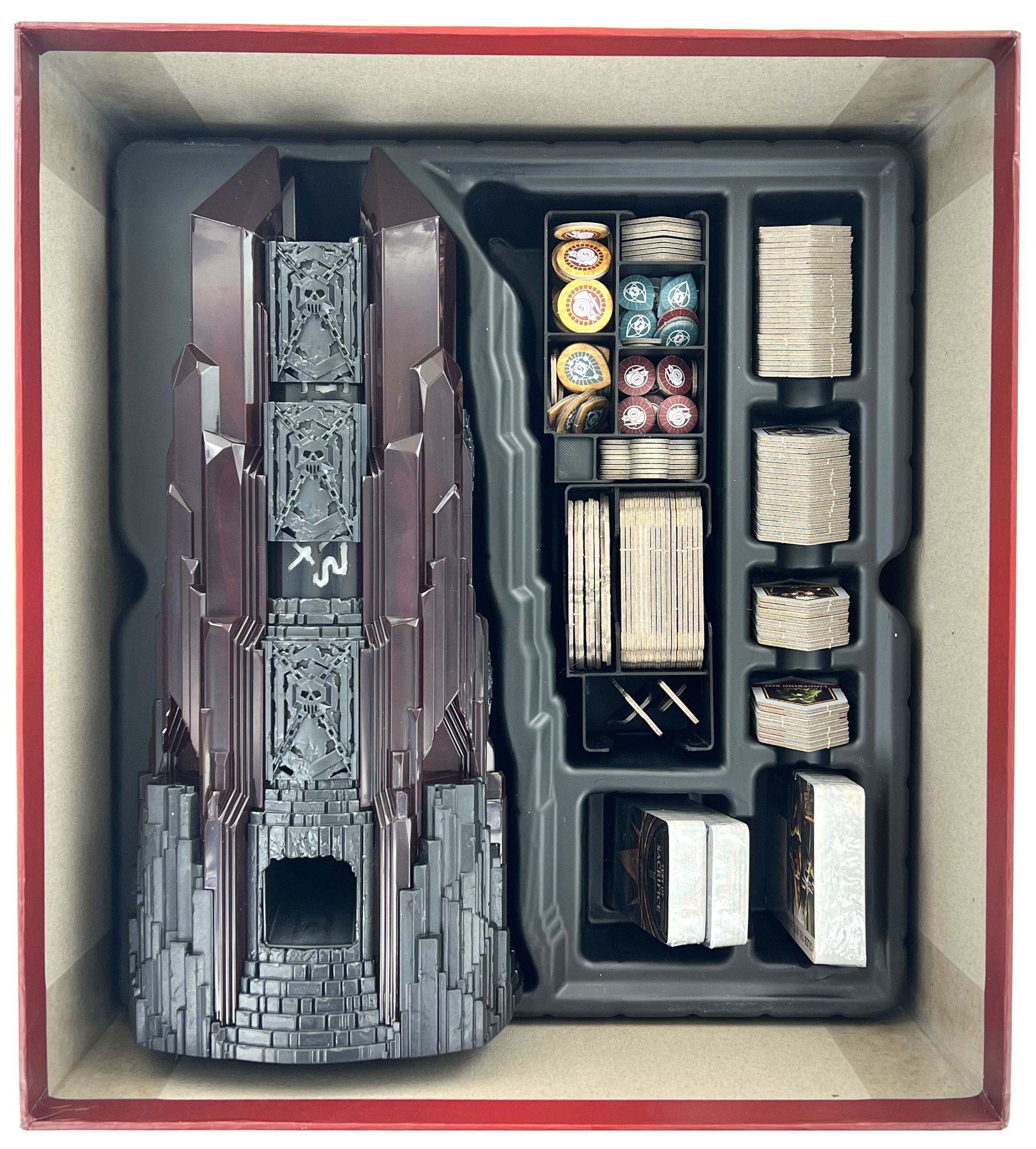 The Dark Tower has turned into one big ruin. The supplied plastic tray of the core game box is in good shape, however. It is made even better by our organizer in the smallest format.