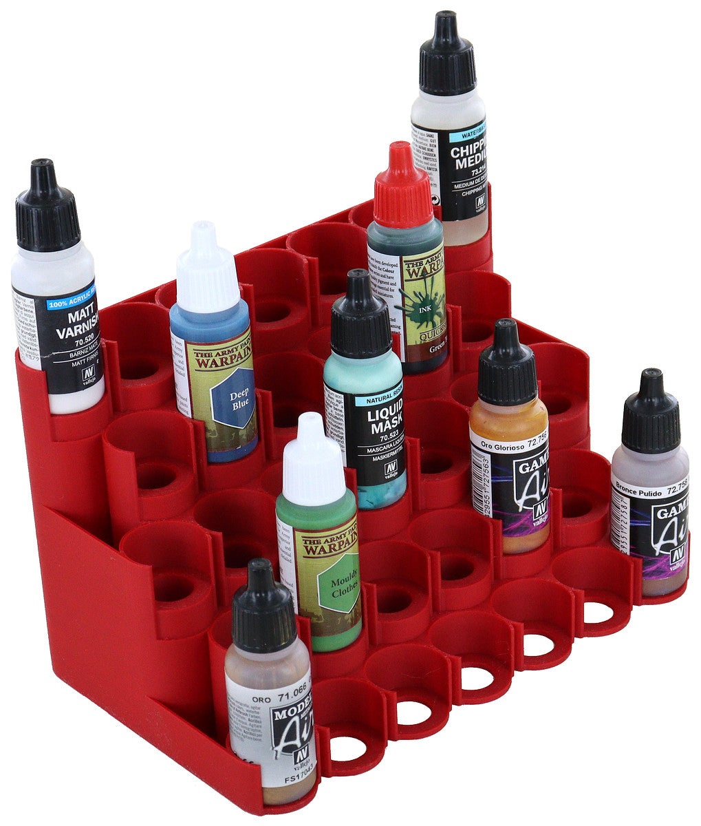 - The Feldherr Paint Rack fits color bottles with a 25 mm diameter from Vallejo, Armypainter, Scalecolor, and other manufacturers.