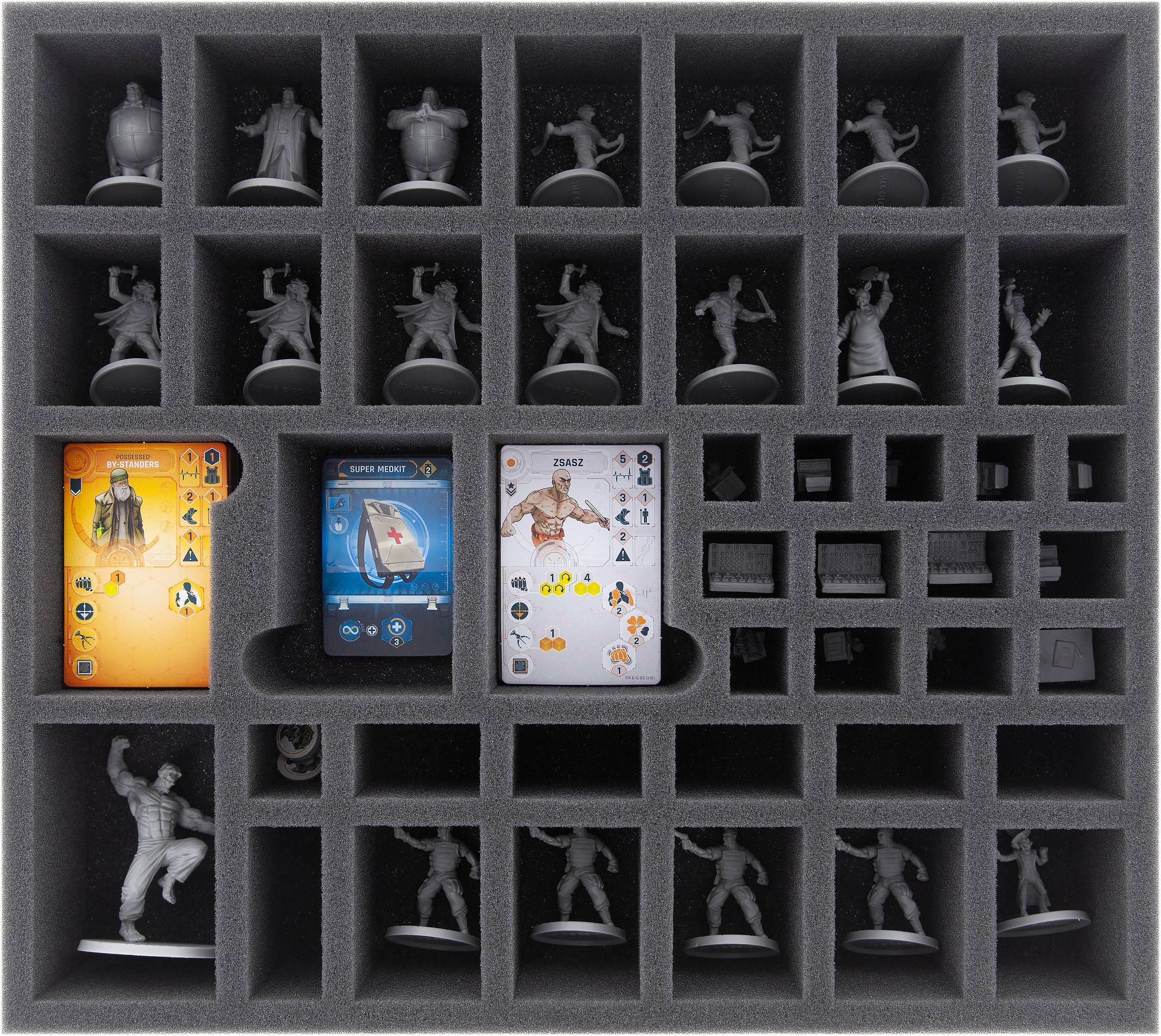 However, even the inmates of "Elizabeth Arkham Asylum for the Criminally Insane" deserve a cosy place after the game. And that's exactly what you'll get with this board game box-specific foam set.