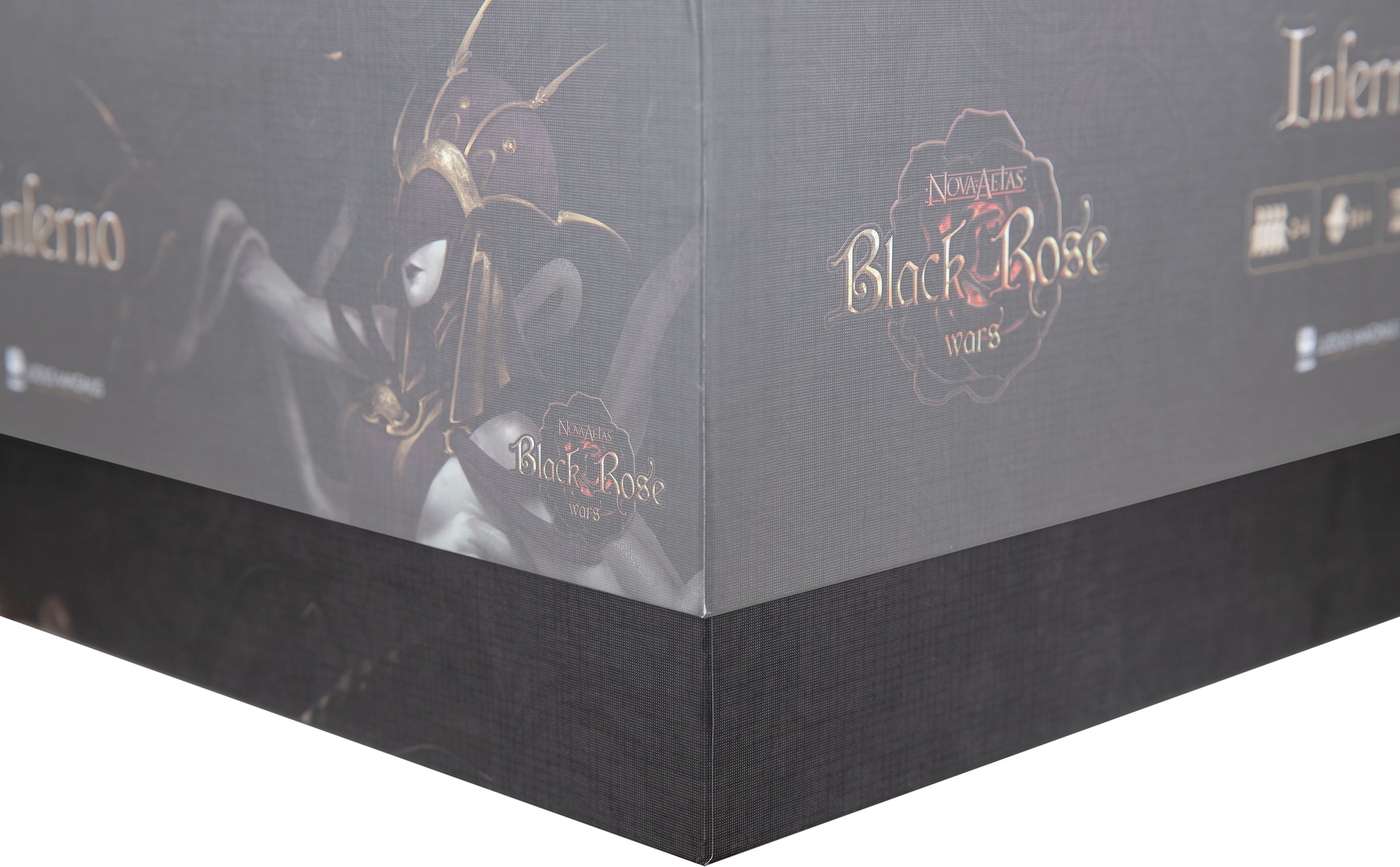 • The set fits neatly into the original board game box of the "Black Rose Wars" expansion "Inferno" from Ludus Magnus Studio.