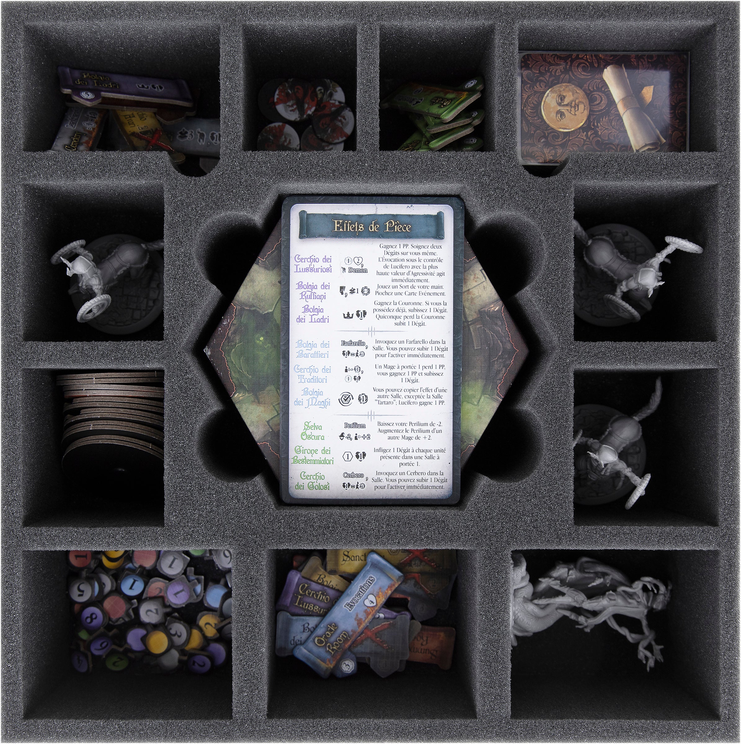 • Provides space for all 18 miniatures and the complete game accessories of the expansion.