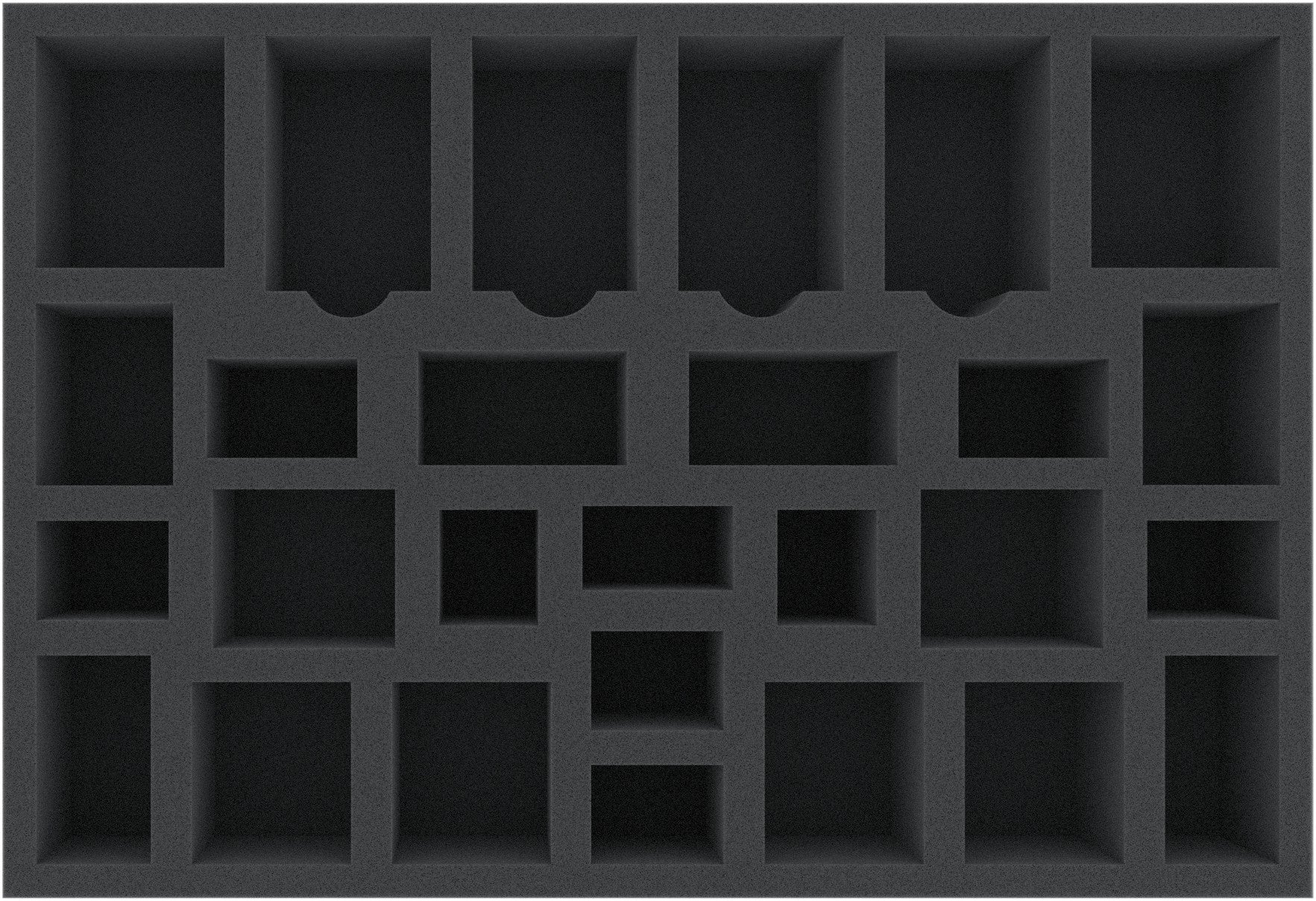 • 1 foam tray with 27 compartments for miniatures, bases and small-sized cards.