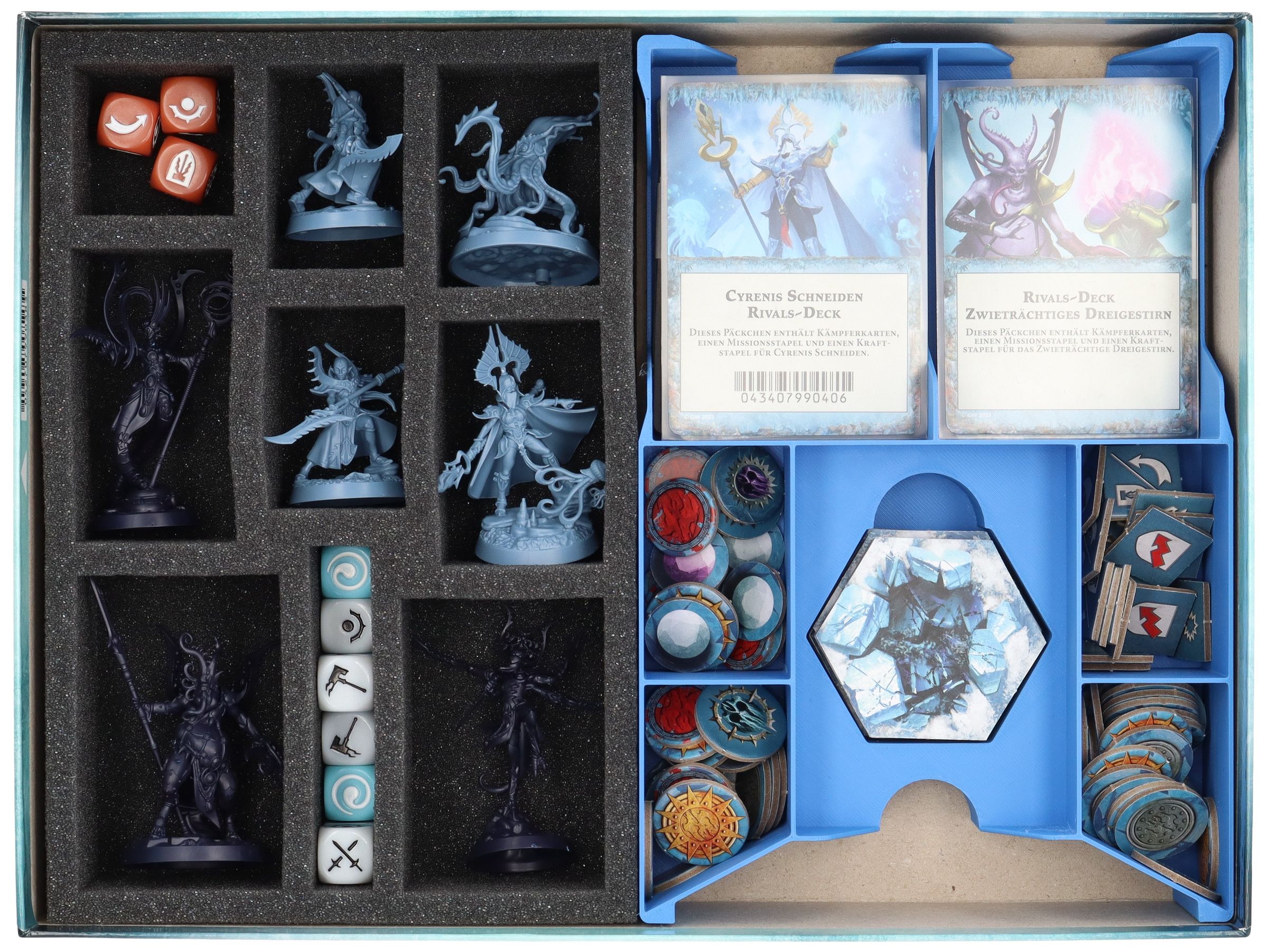 • The set fits exactly into the original core game box of “Warhammer Underworlds: Deathgorge.” (Total external dimensions of the set: approx. 292 x 219 x 55 mm)