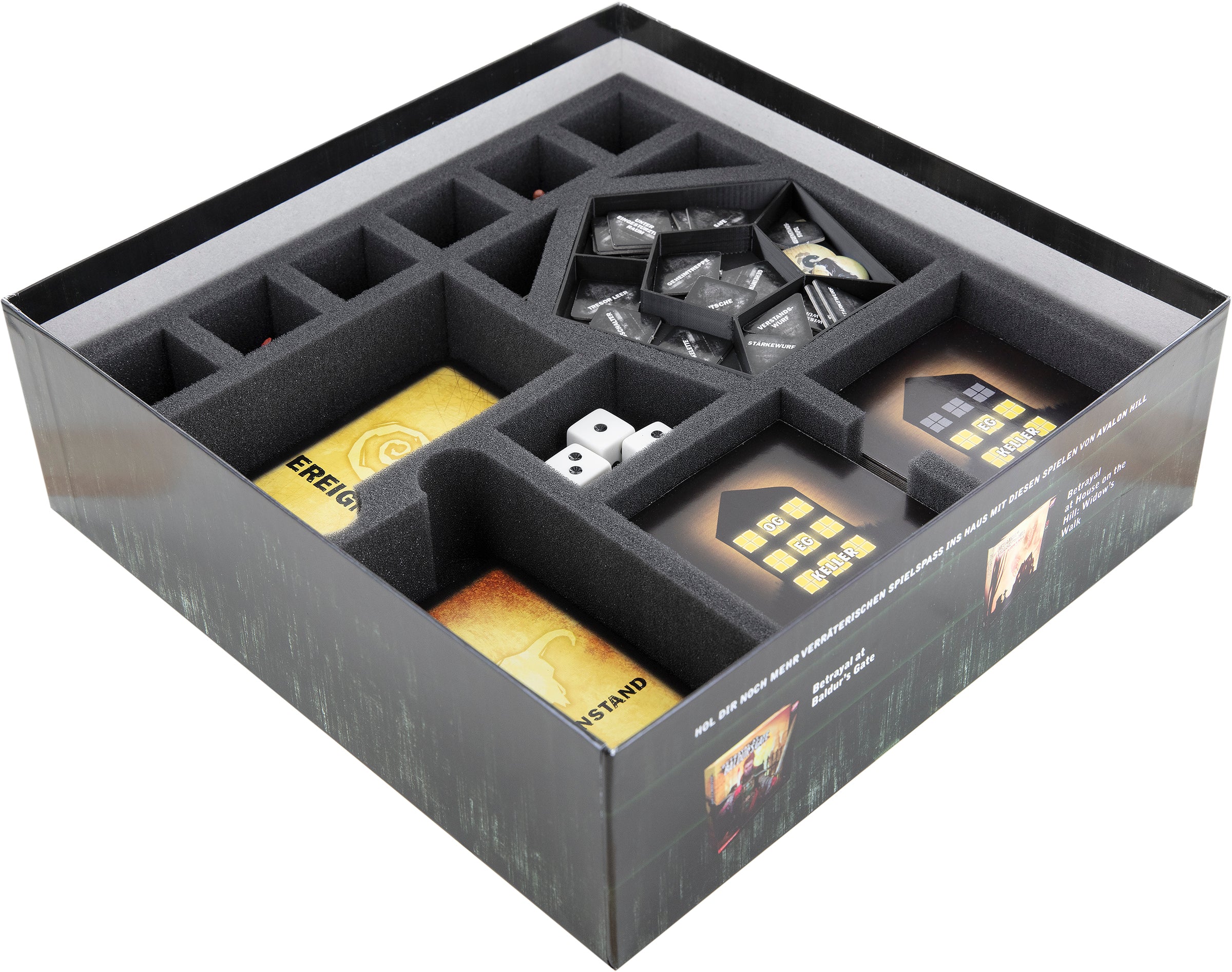 - The foam set fits neatly into the "Betrayal at House on the Hill 2nd Edition" core game box.