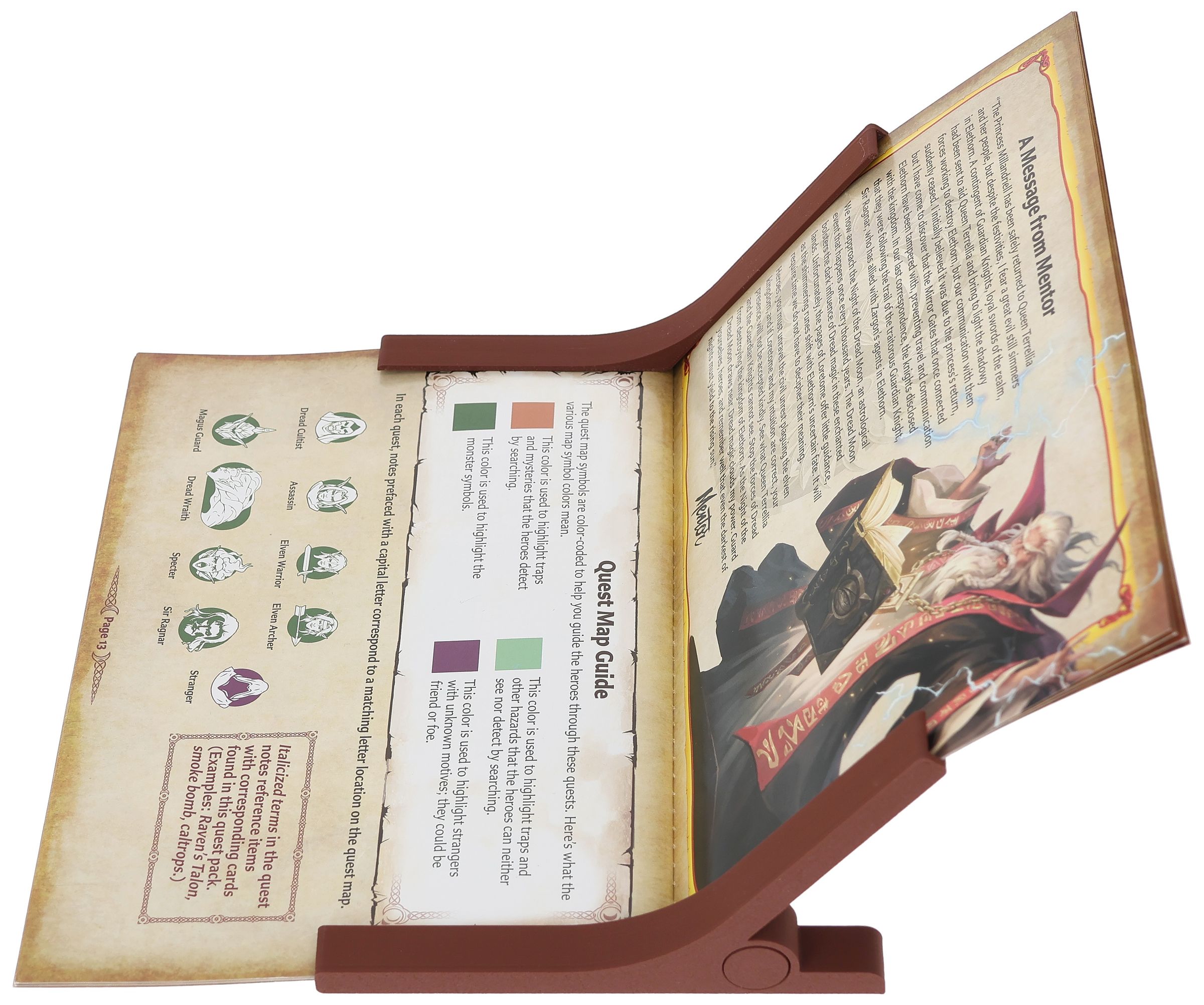 - The page holders keep your Quest Book open during the game, so you always have the right quest in view.