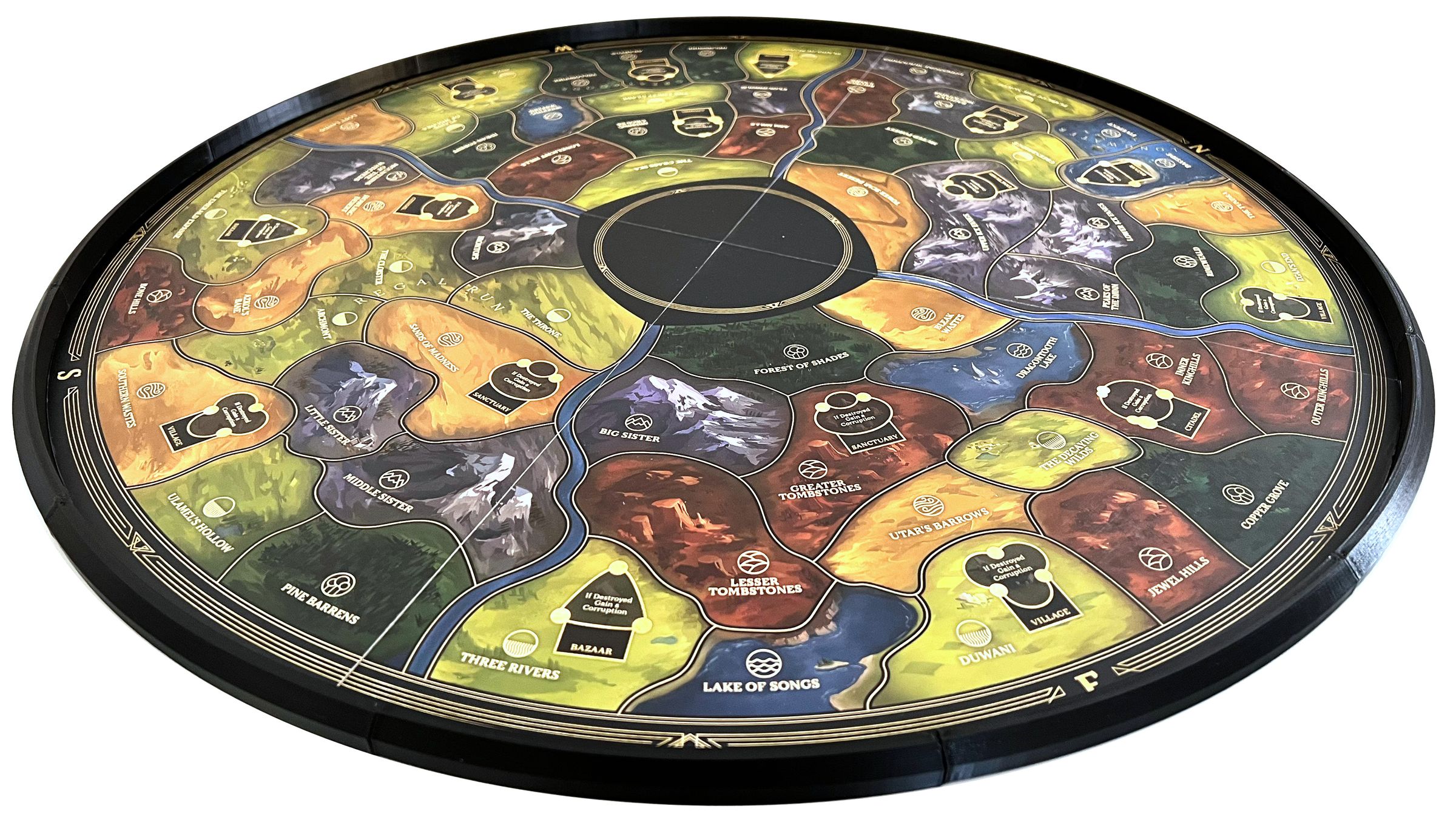 • The ring wall prevents small-sized game material that the tower spits from falling off the game board.