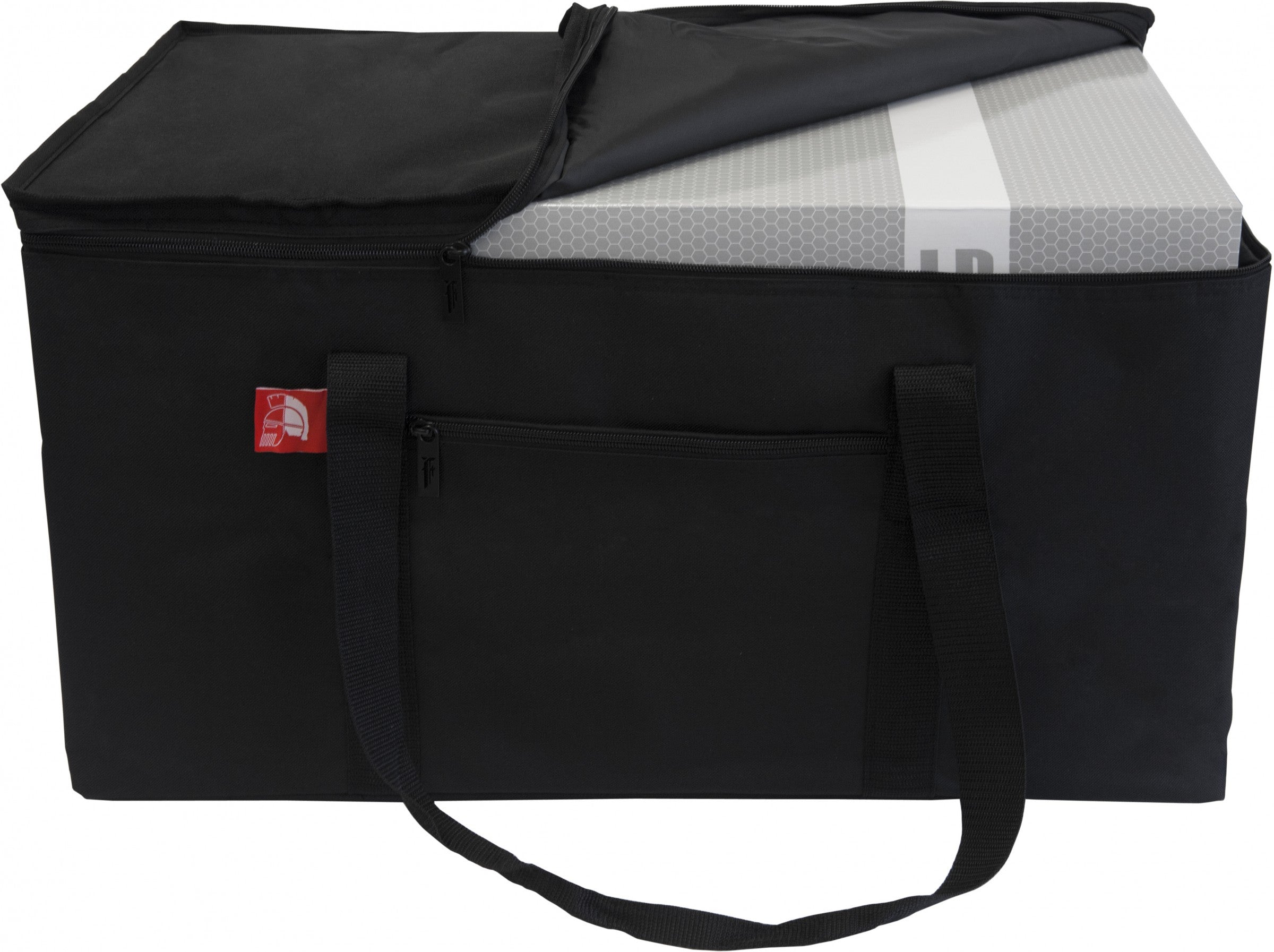 When not in use the Transporter bag folds flat and can easily be stowed in any cabinet.
