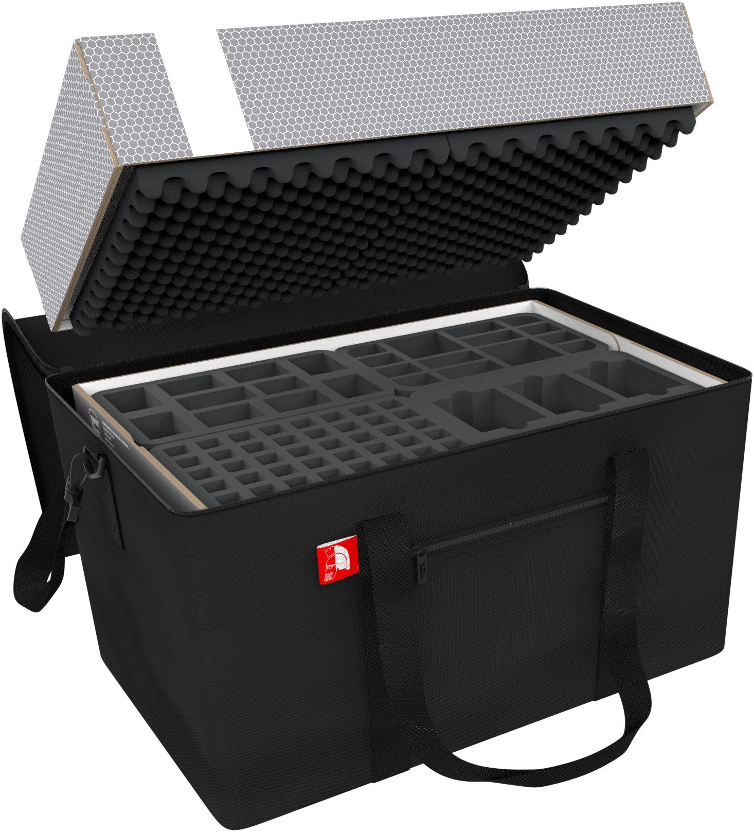 In order to keep you from going crazy when arranging all of Deep Madness' fantastic miniatures and game materials, Feldherr has assembled a Transporter bag with a Double-Size Storage Box containing 14 custom-fit foam trays.