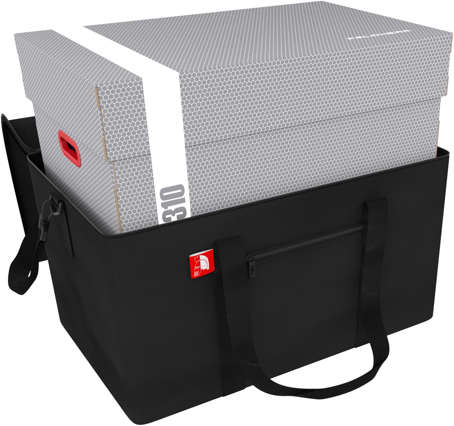 Our Transporter bag is made of light but durable fabric. In addition to the large main compartment, the bag has a small side compartment. It can be lifted with two carrying handles or comfortably shouldered with the sturdy carrying strap.