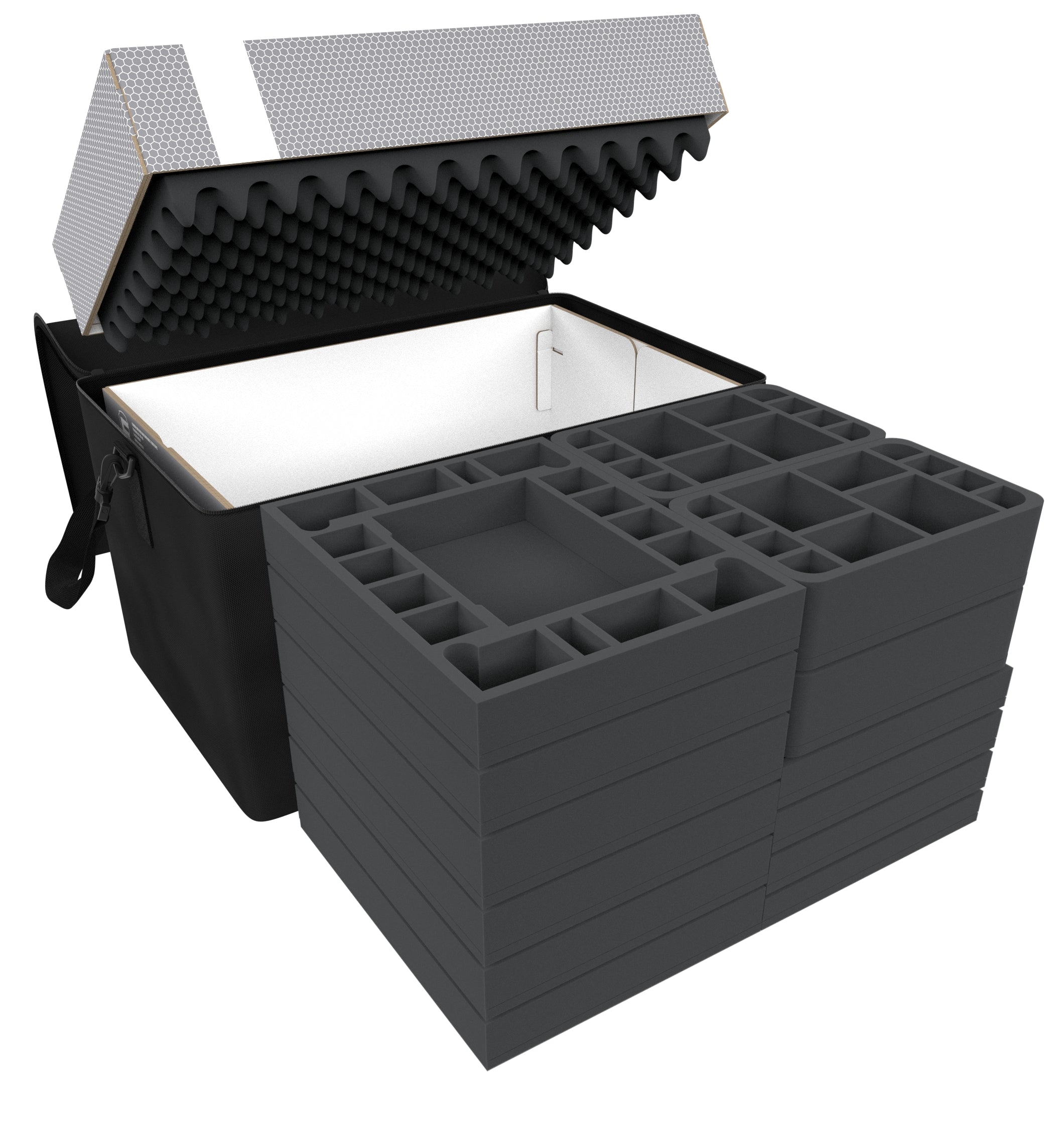 • 1 Full-Size foam tray with 25 compartments for miniatures (FSLQ040BO)
