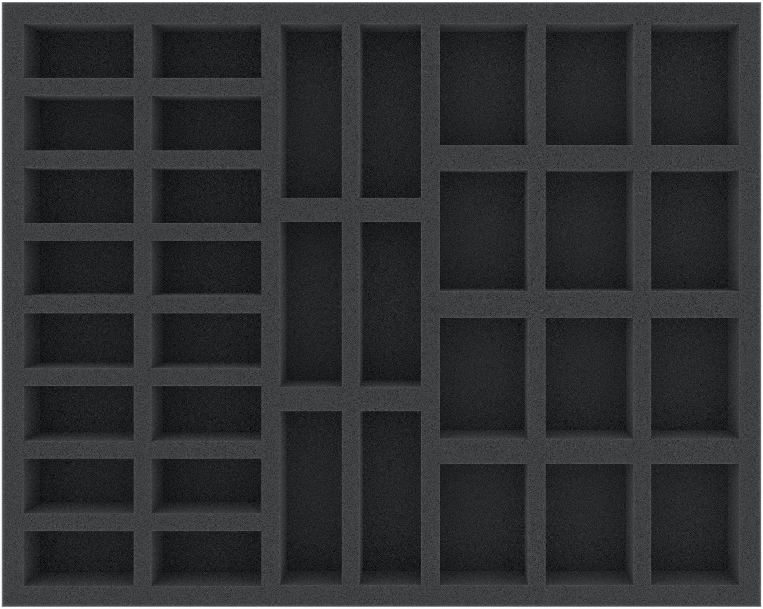 The Full-Size foam tray has the dimensions: 345 mm x 275 mm x 35 mm total height (25 mm usable height + 10 mm foam base).