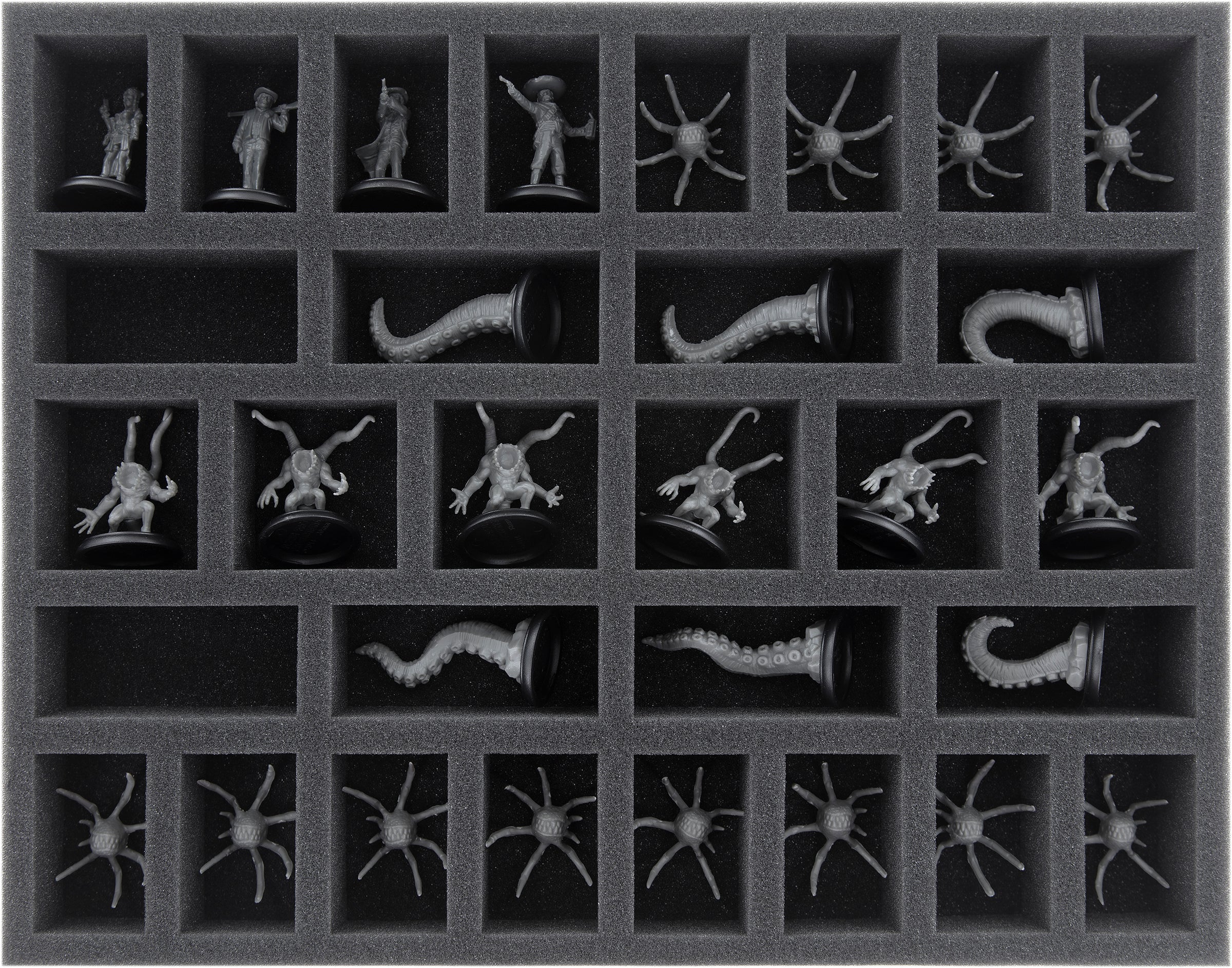 This foam tray is divided into 30 compartments. These are ideal for the protected storage and transport of miniatures of the Shadows of Brimstone series.