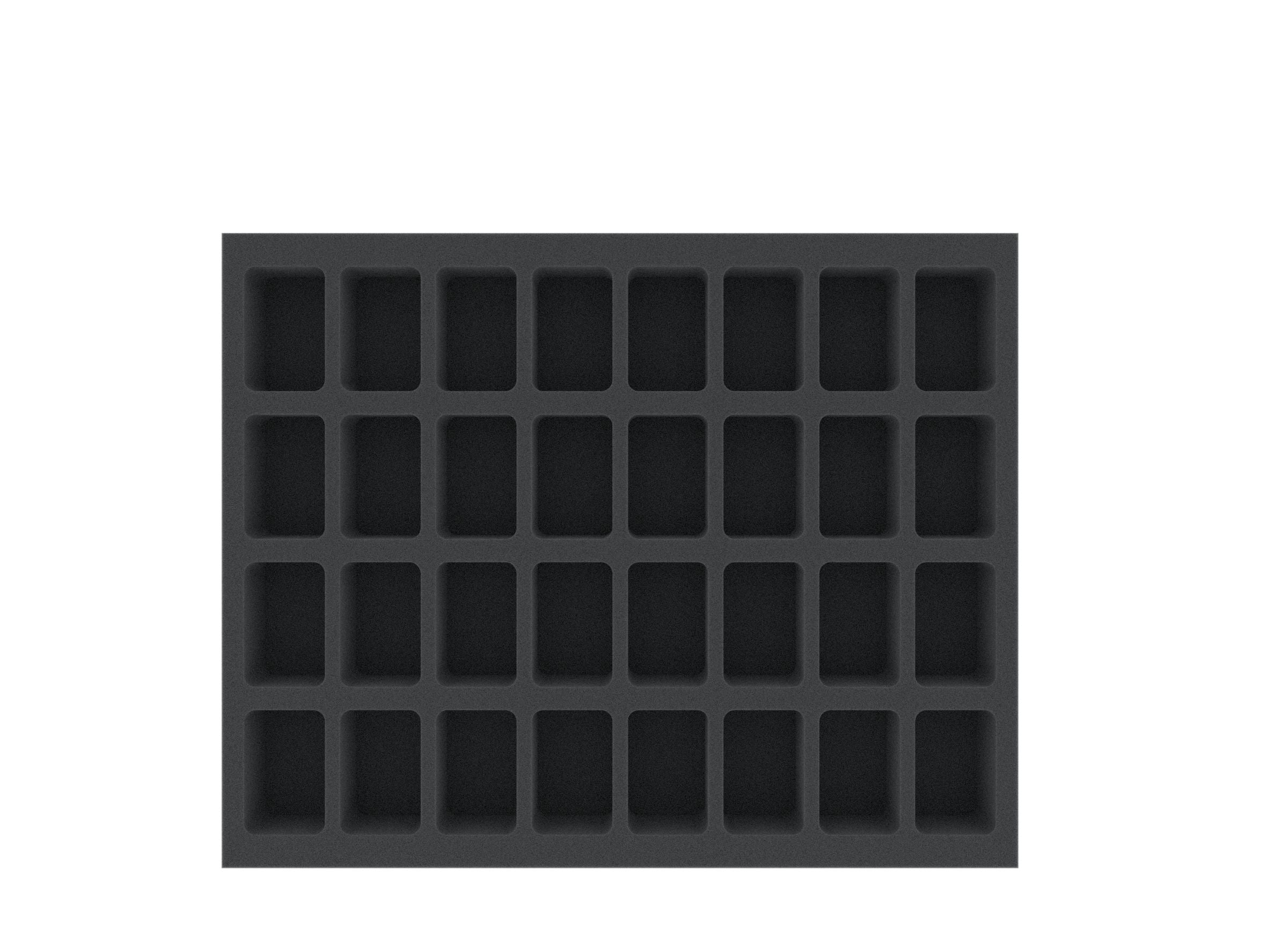 With this Feldherr foam tray up to 32 WWX miniatures are safely stored. The compartments of the same size are ideal for storing standard units on 30 mm bases (base size S) clearly arranged and well protected.