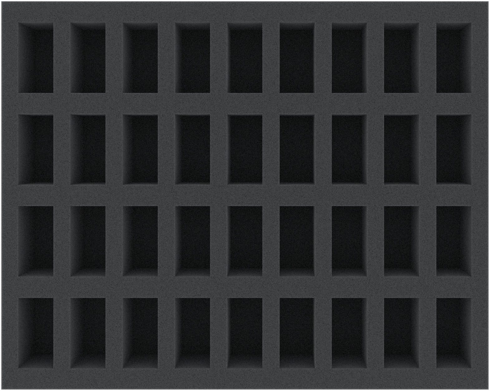 This Full-Size foam tray is divided into 36 compartments. The compartments of equal size are ideal to safely store a variety of standard miniatures in 28 mm scale from various board games and tabletop systems.