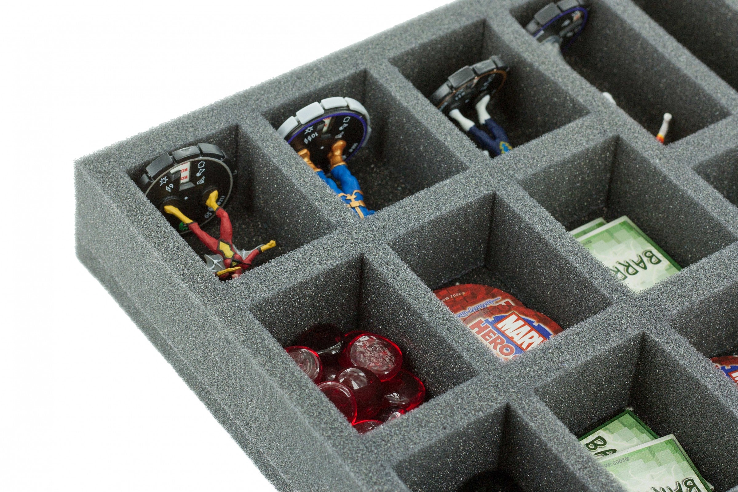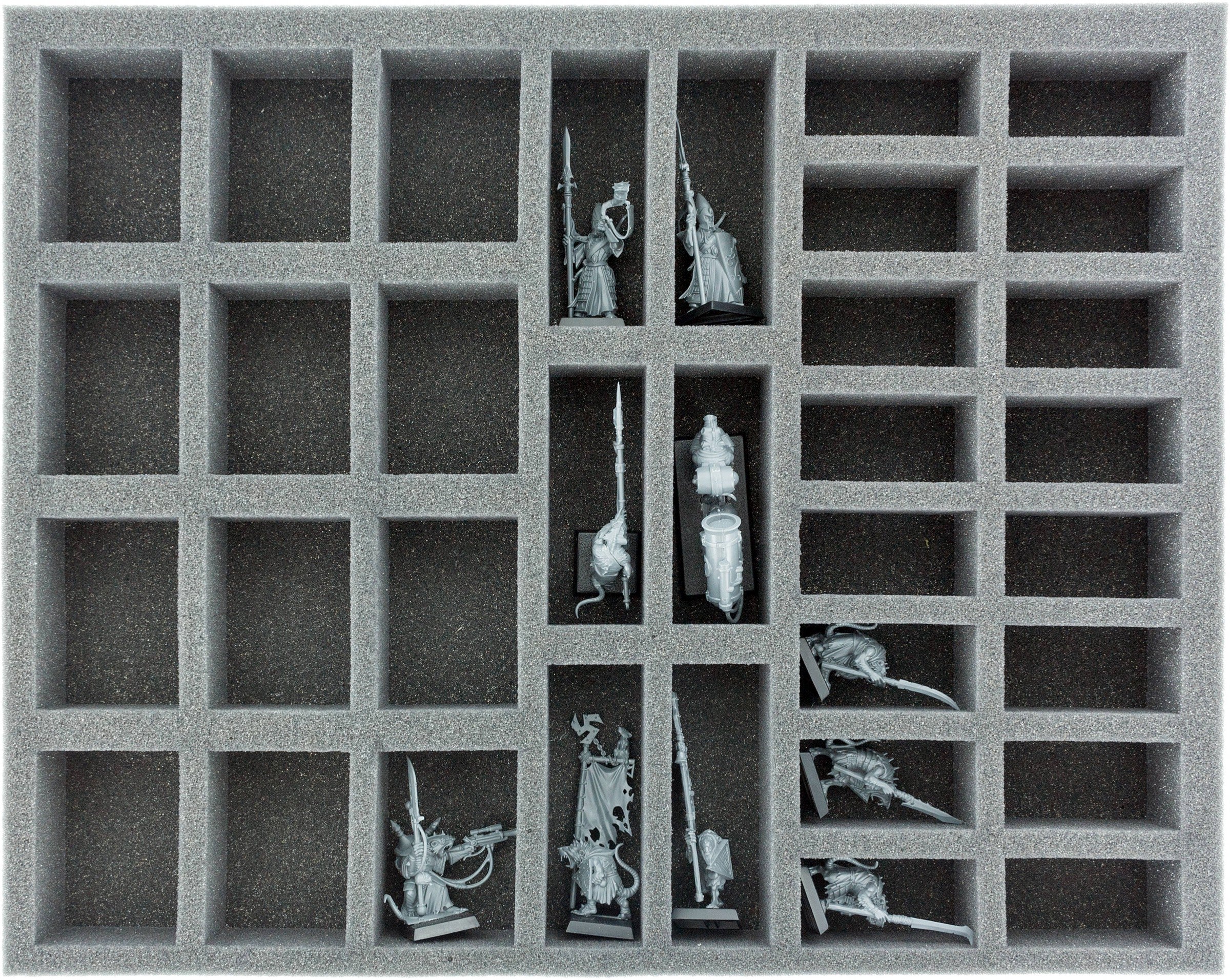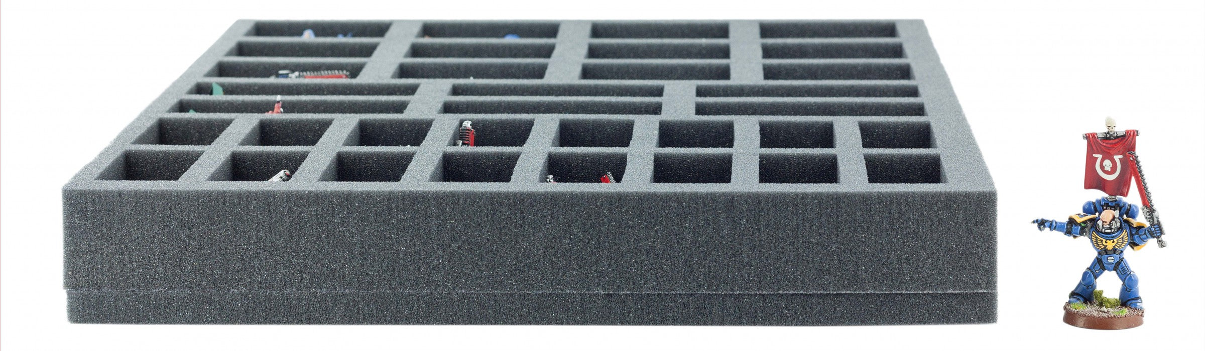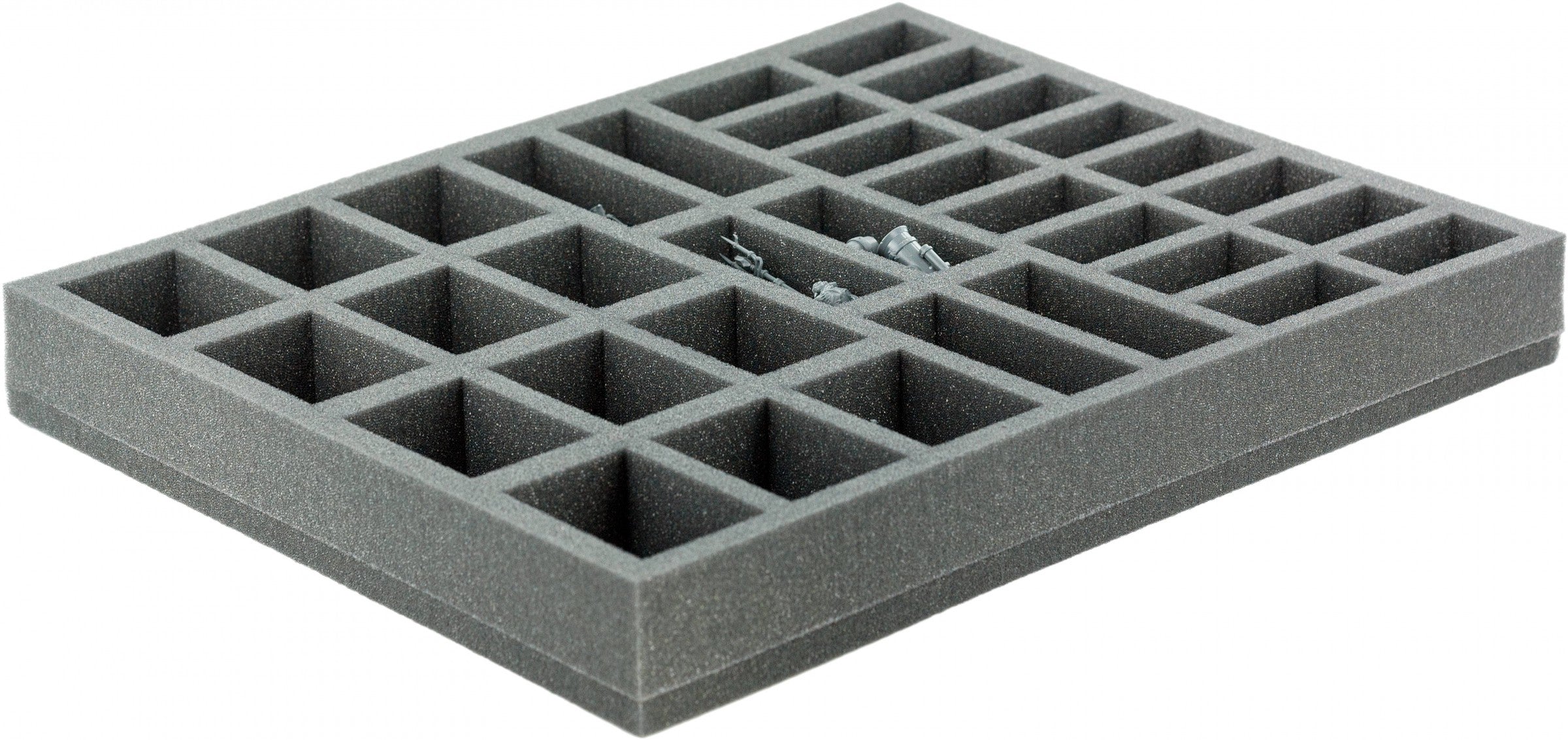 Taca piankowa jest podzielona na 34 przedziały o różnych rozmiarach. Doskonale nadaje się do miniaturowych zestawów z figurkami o różnych rozmiarach do różnych gier planszowych i systemów stołowych w skali 28 mm.