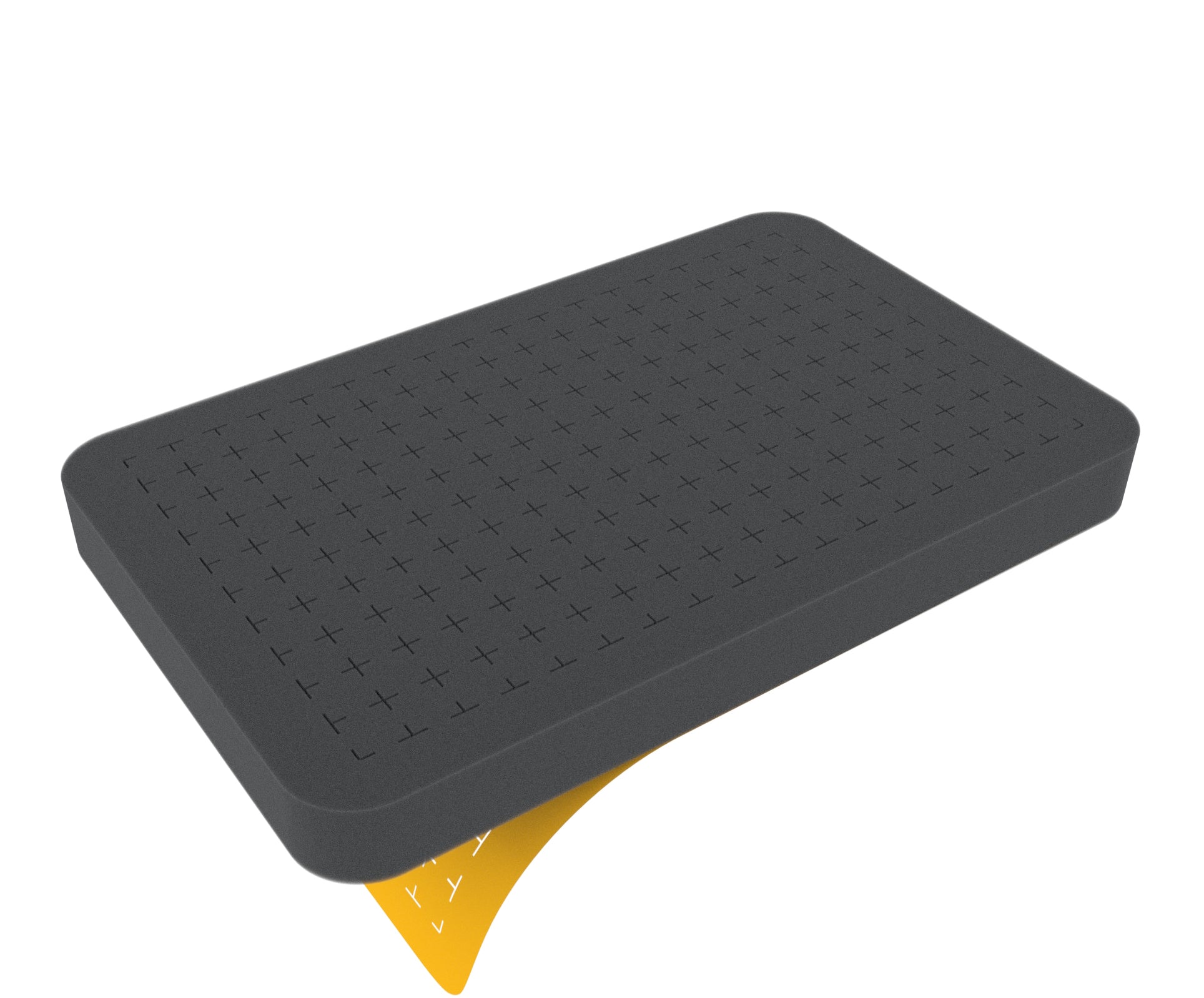 Prekubowana pianka jest całkowicie wycięta na całej wysokości. Podstawa z pianki jest dostępna osobno. Aby zapewnić optymalną ochronę zapakowanych przedmiotów od spodu, zalecamy użycie 10 mm mocnej podstawy piankowej, takiej jak HS010B.