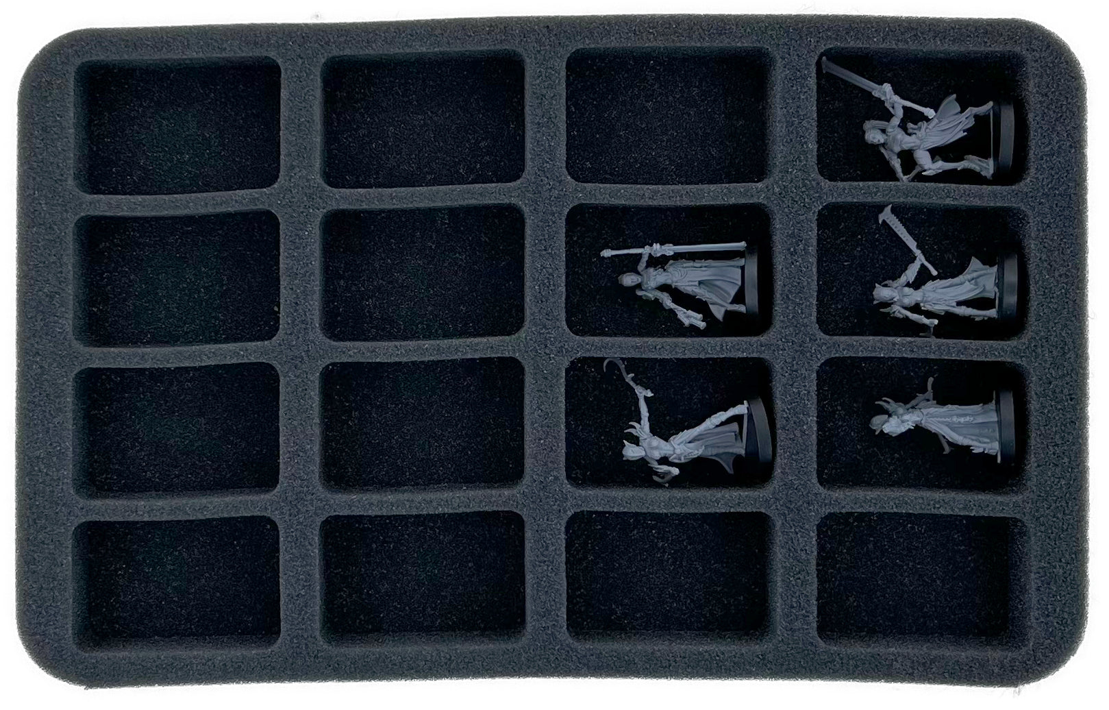 On this Half-Size foam tray you have space for up to 16 miniatures of your Raging Heroes. The insert is ideal for storing models on up to 25 mm bases