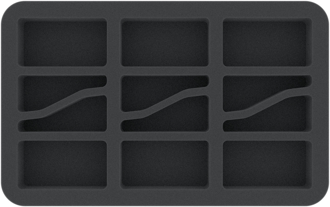 Specjalna taca na pianę do wszystkich płomieni graczy wojennych (FoW)! Taca mieści 6 dużych zbiorników i wieżyczek pistoletowych. Gotowa do użycia - przyklejona podstawa z pianki 10 mm. Głębokość pianki 35 mm wynika z podstawy z pianki 10 mm i tacy z pianką szczelinową z 25 mm głębokość efektywna.