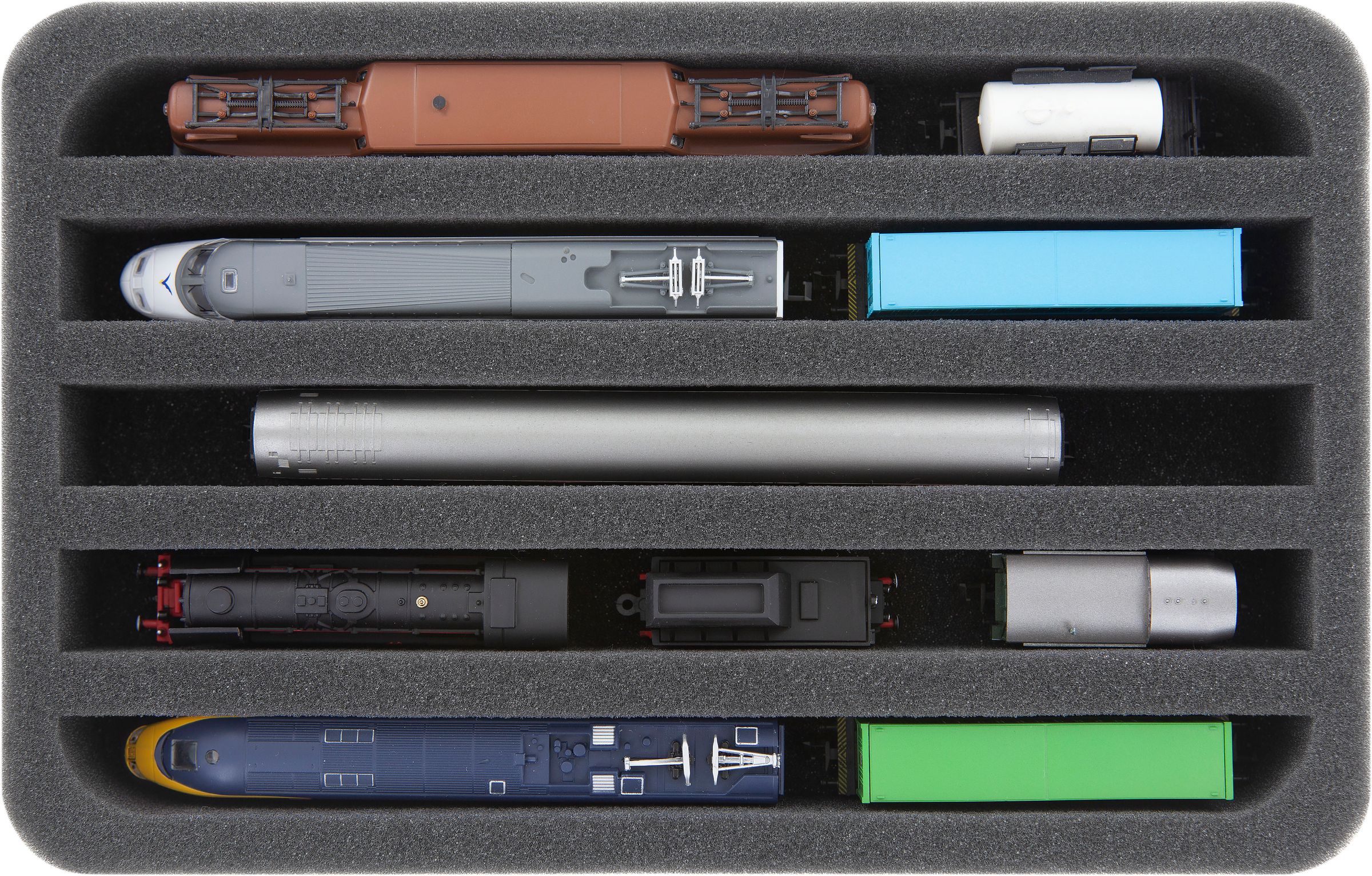 HS040A004 foam tray N-gauge - vertical - 5 slots for model railway locomotives, wagons and vehicles