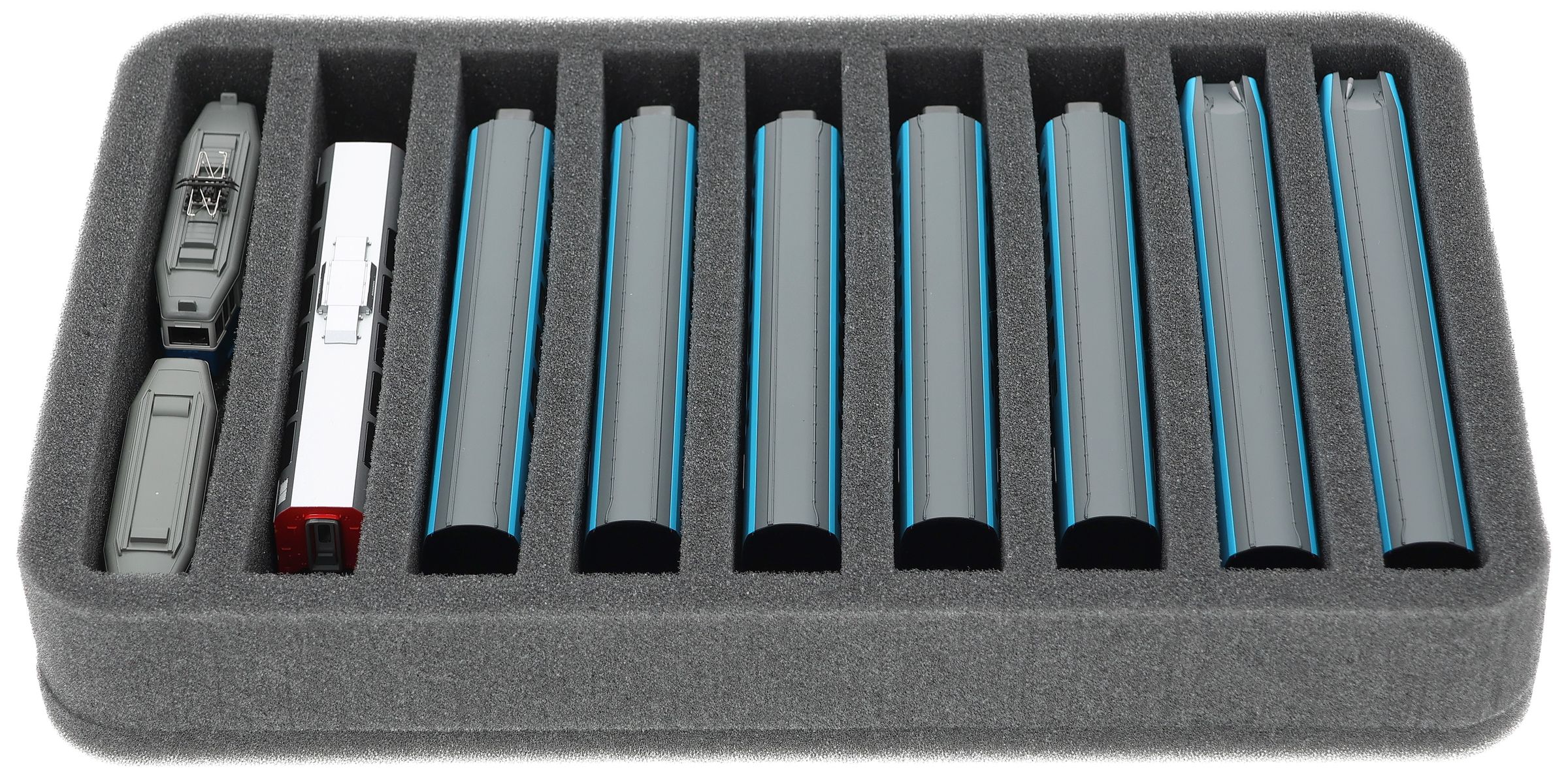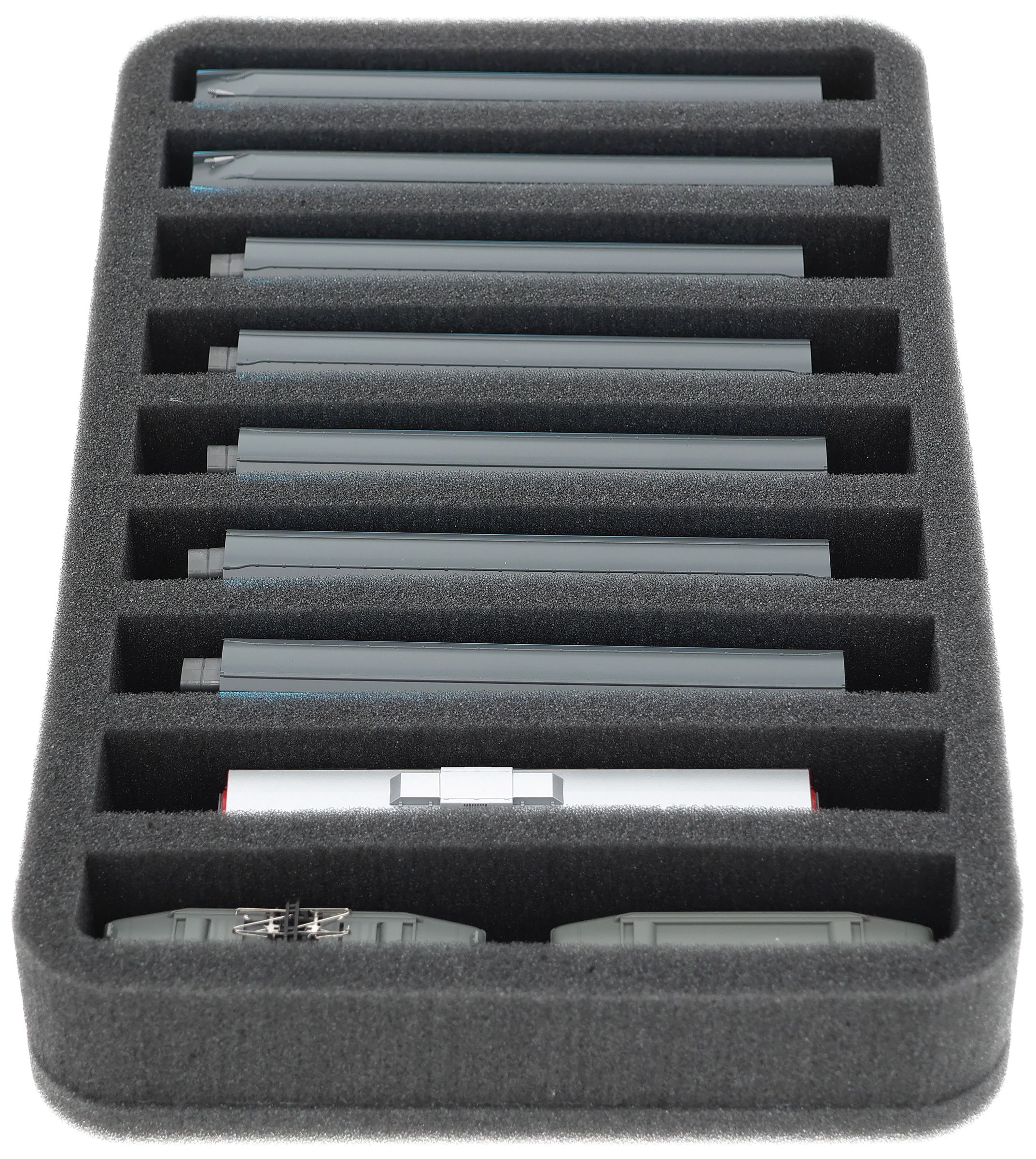 HS040A042 foam tray N Gauge - vertical - 9 slots for model railway locomotives, wagons and vehicles