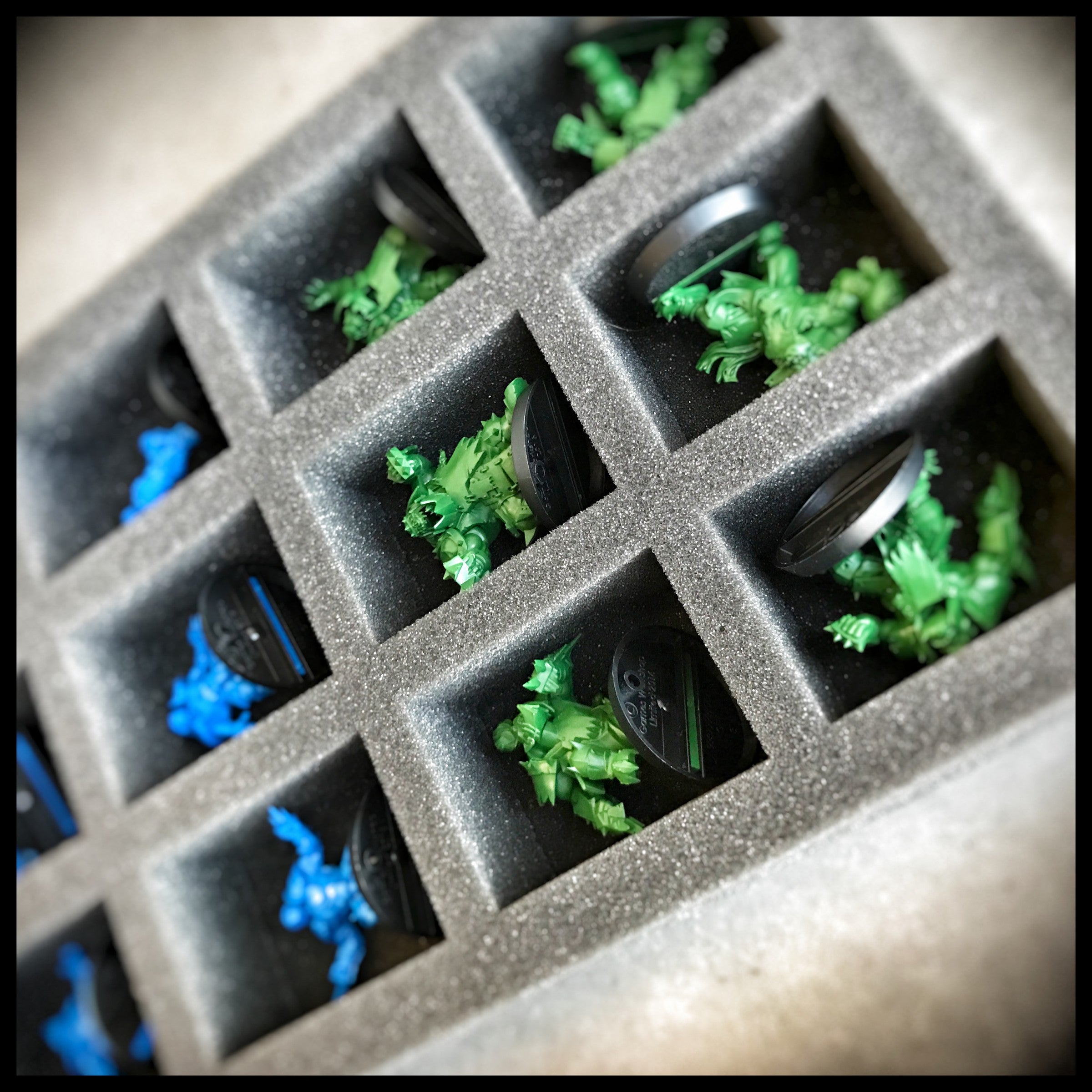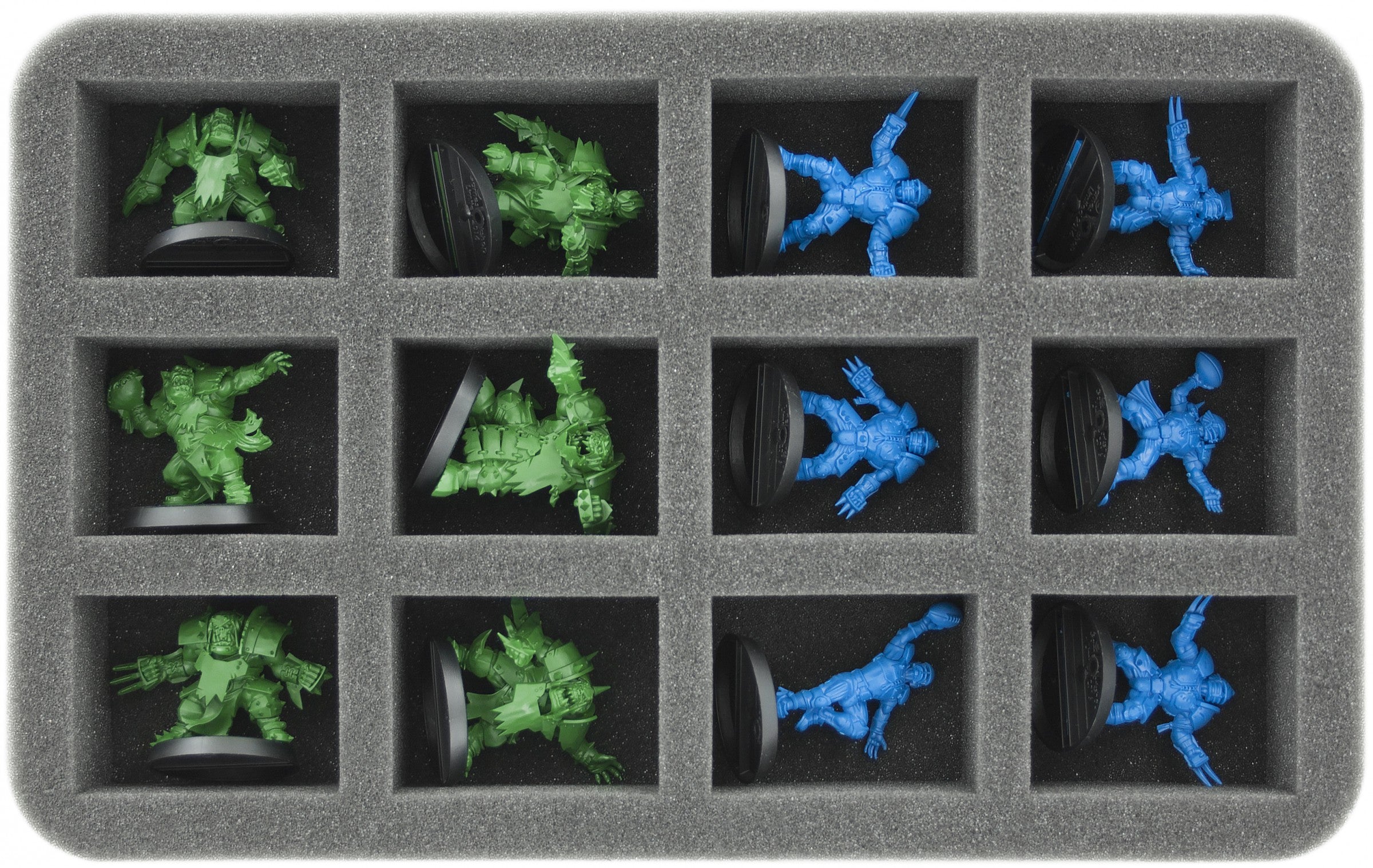 Special foam tray for 12 Blood Bowl 2016 and other fantasy football miniatures.