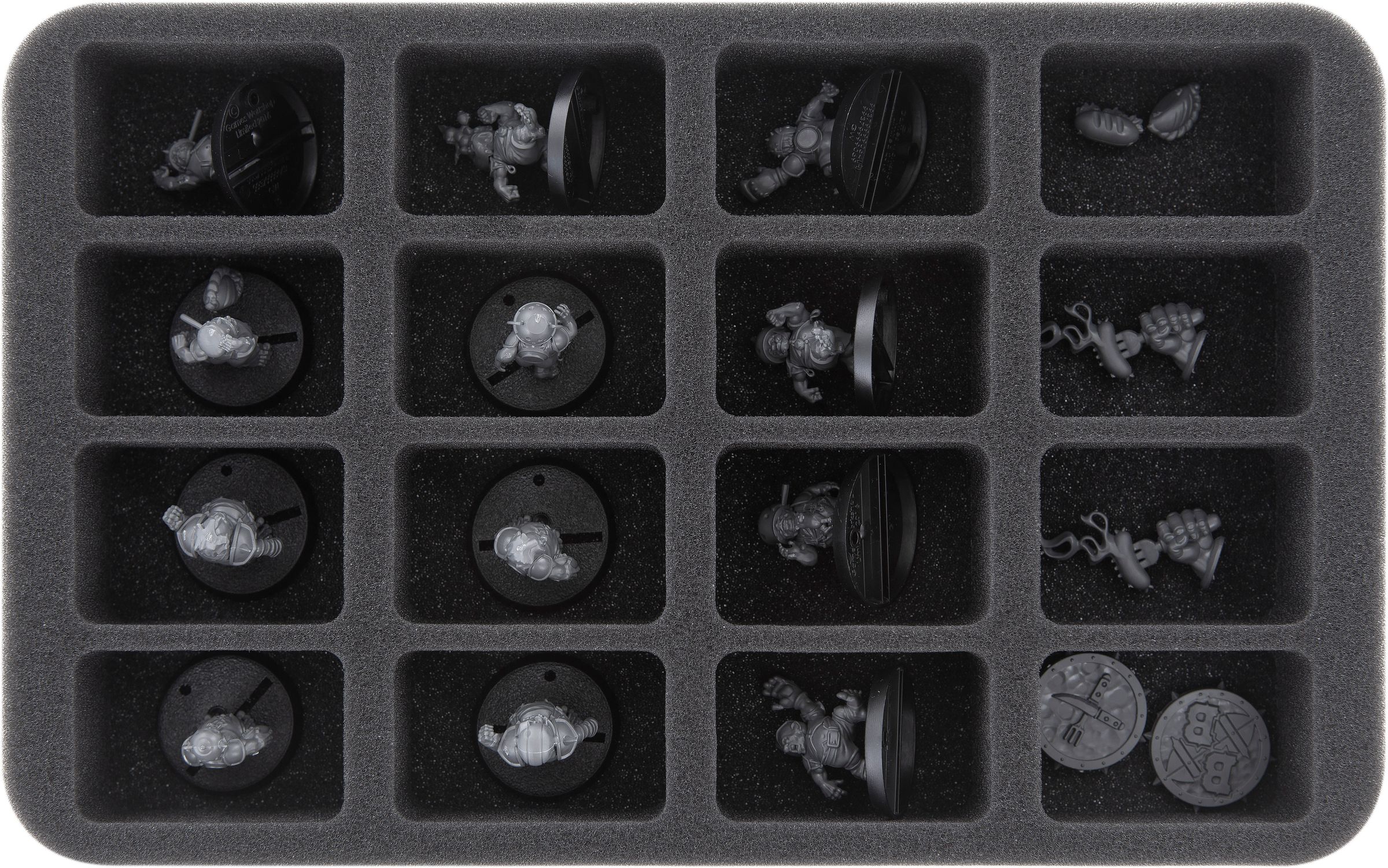 Special foam tray for 16 small Blood Bowl 2016 and other fantasy football miniatures. Particularly suitable for goblins.