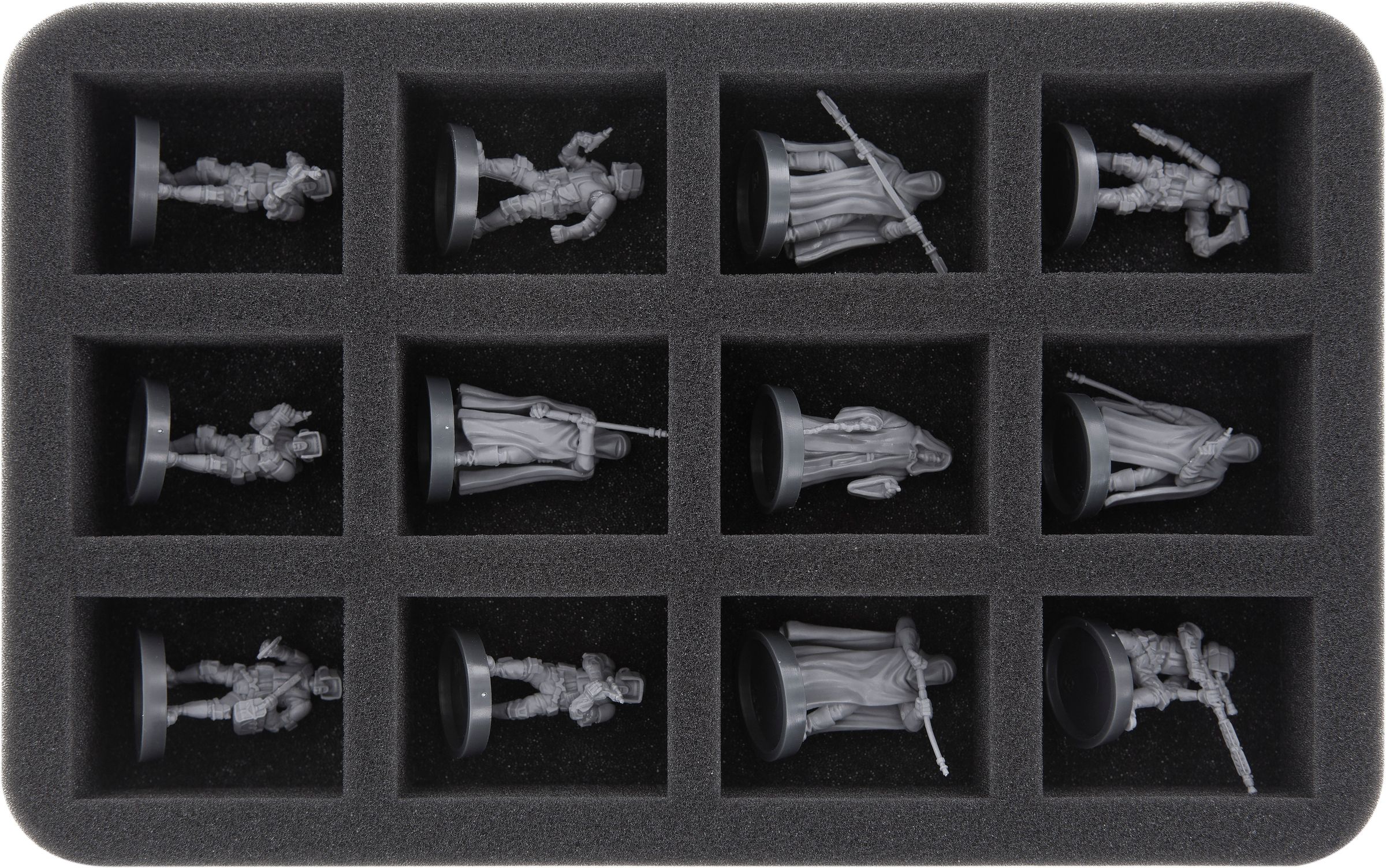 With this Half-Size foam tray you get a safe shelter for up to 12 Star Wars: Legion figures. The compartments are suitable for most trooper, commander, or specialist models.