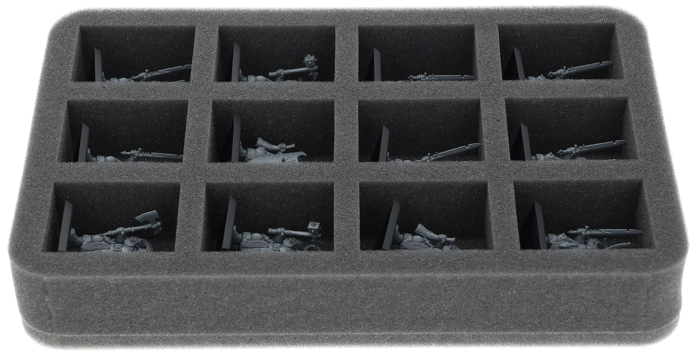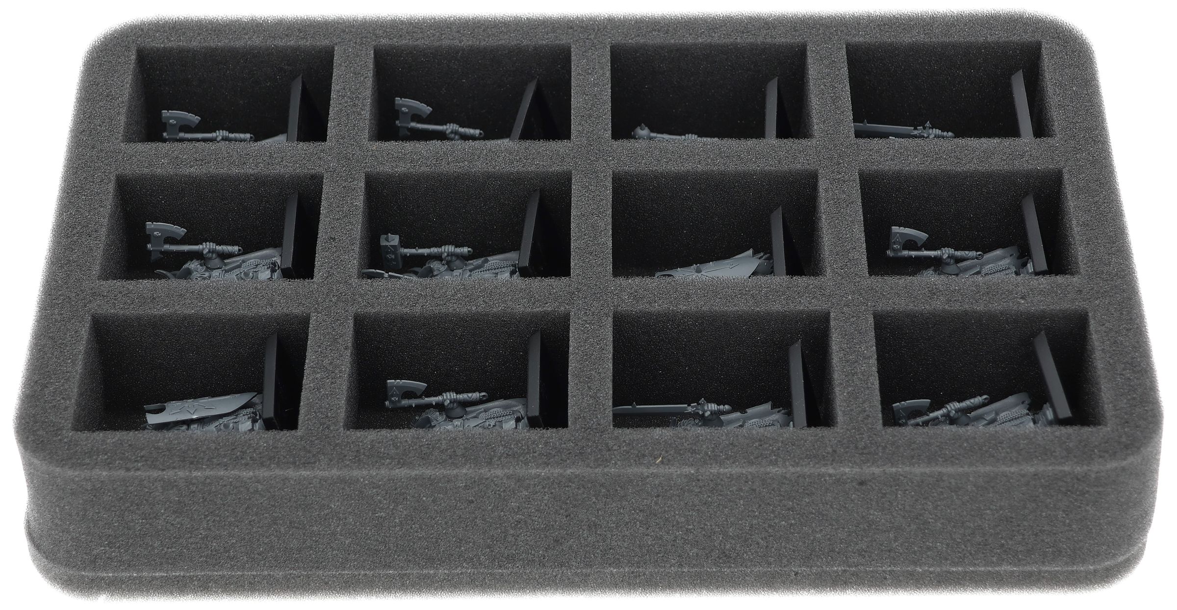 On this Feldherr foam tray you have space for up to 12 miniatures of your army. The insert is especially suitable for storing the Chaos Marauders, Chaos Warriors and similar sized models.